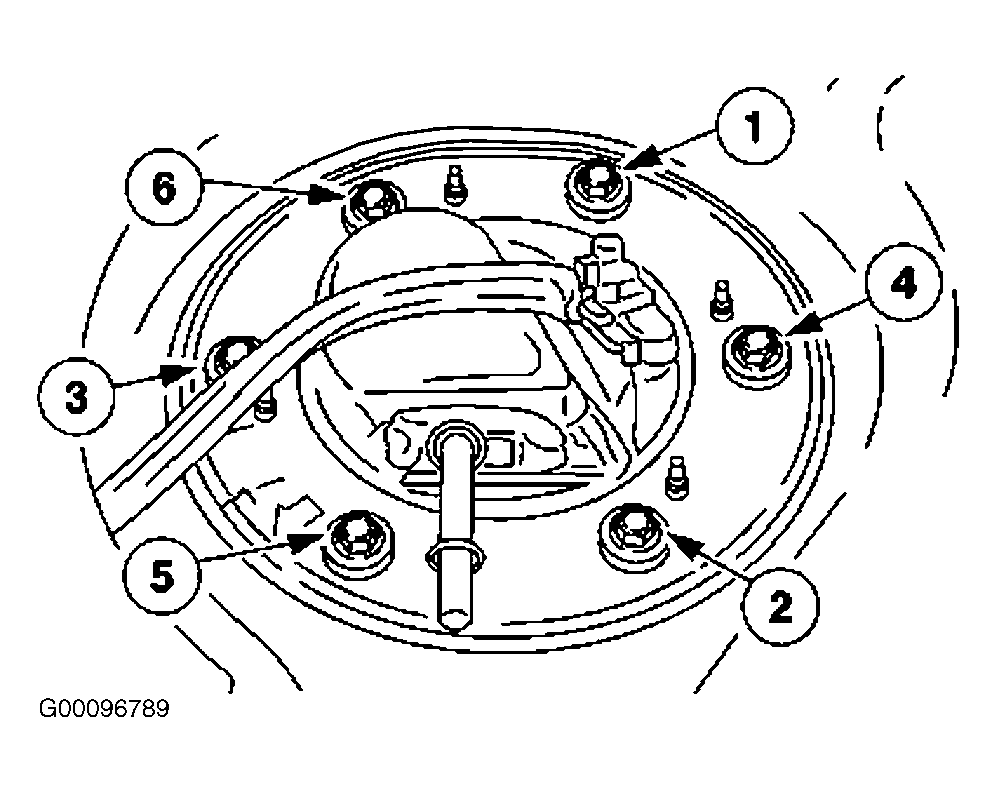 - Remove fuel tank. See FUEL TANK . Clean area around fuel pump module mounting flange. Remove fuel pump module assembly flange bolts. See Fig 1.