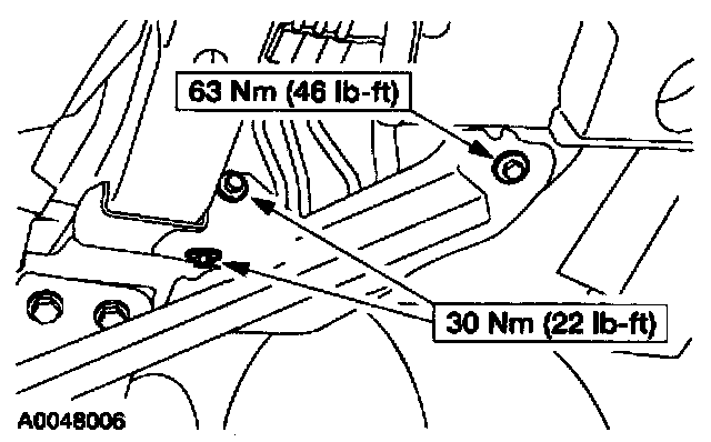 4. Remove the LH front subframe support bolts.