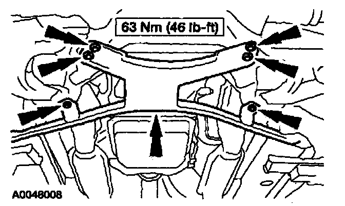 3. Remove the RH front subframe support bolts.