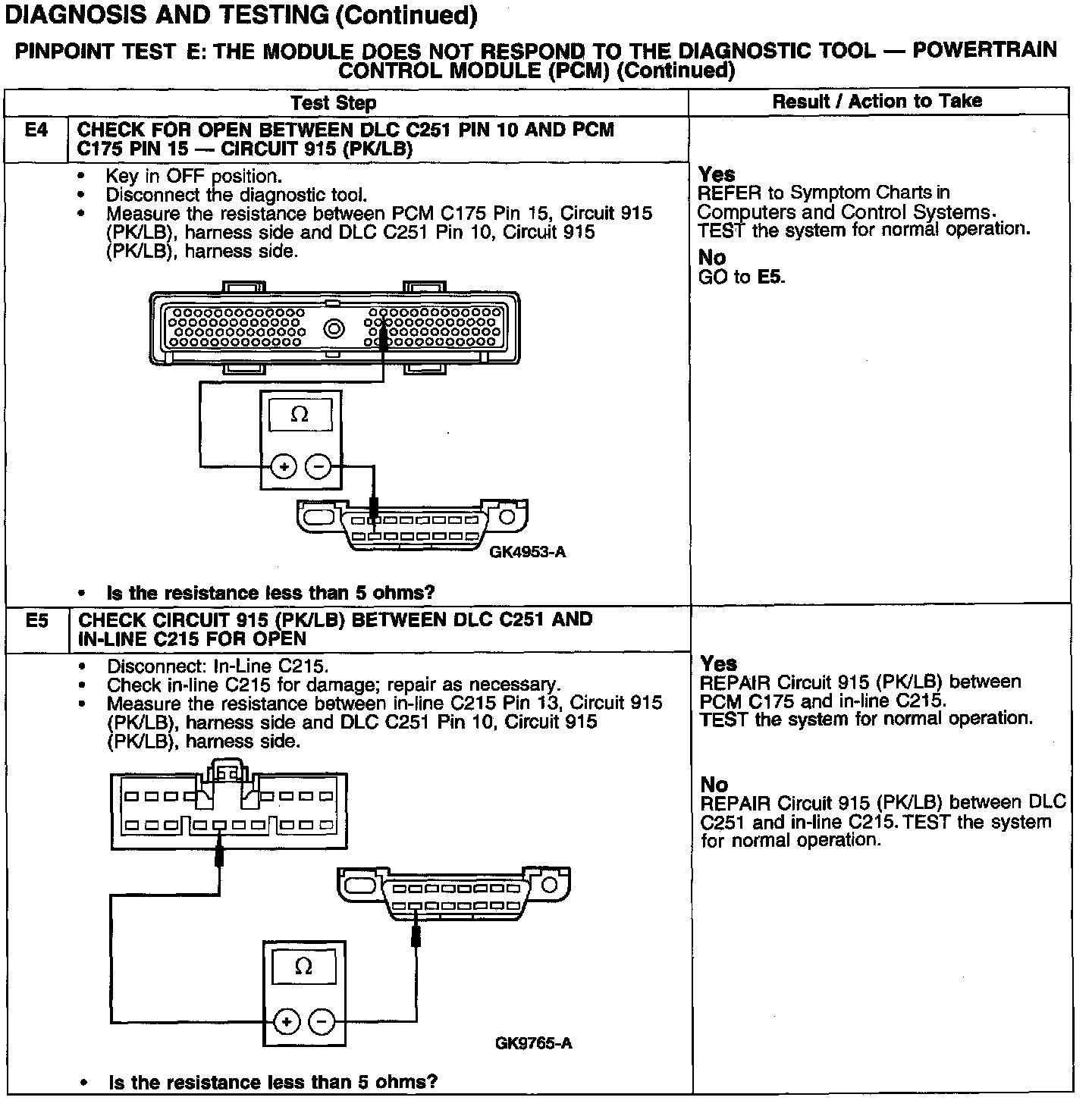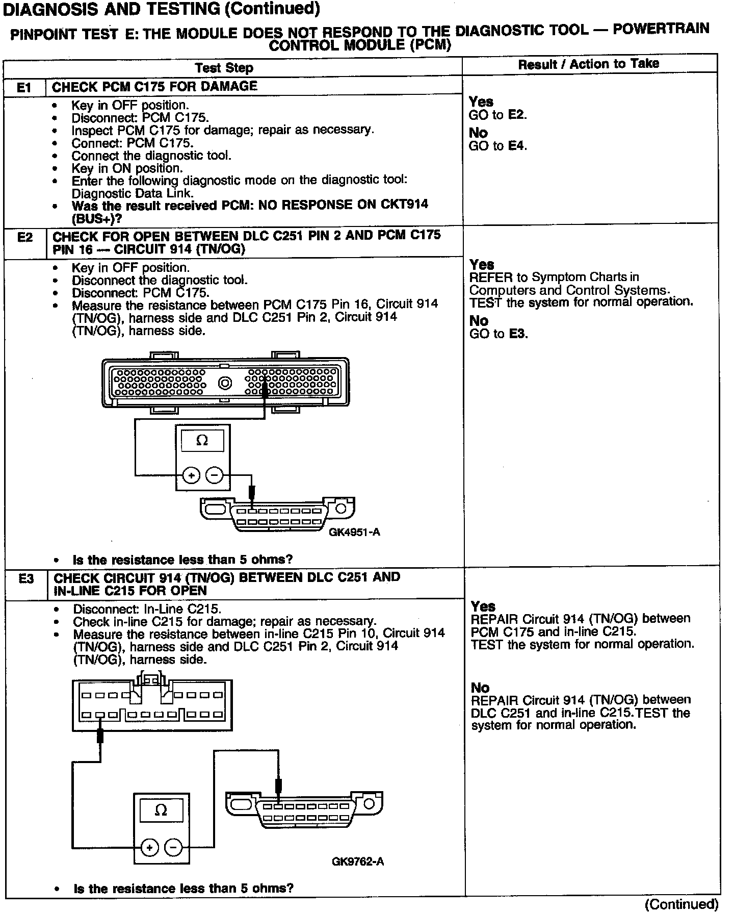 PINPOINT TEST E: THE MODULE DOES NOT RESPOND TO THE DIAGNOSTIC TOOL - POWERTRAIN CONTROL MODULE (PCM)