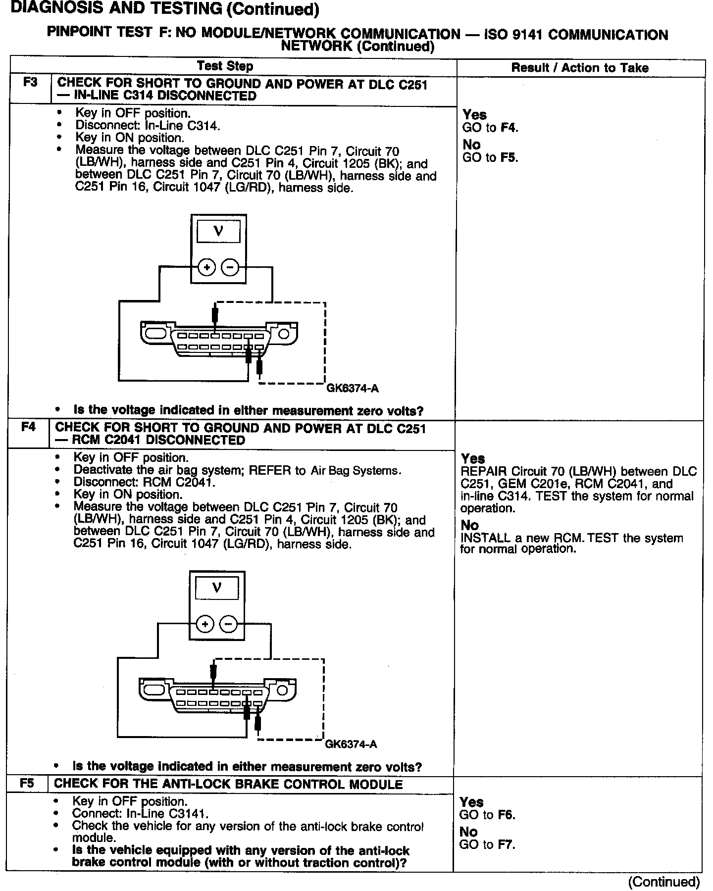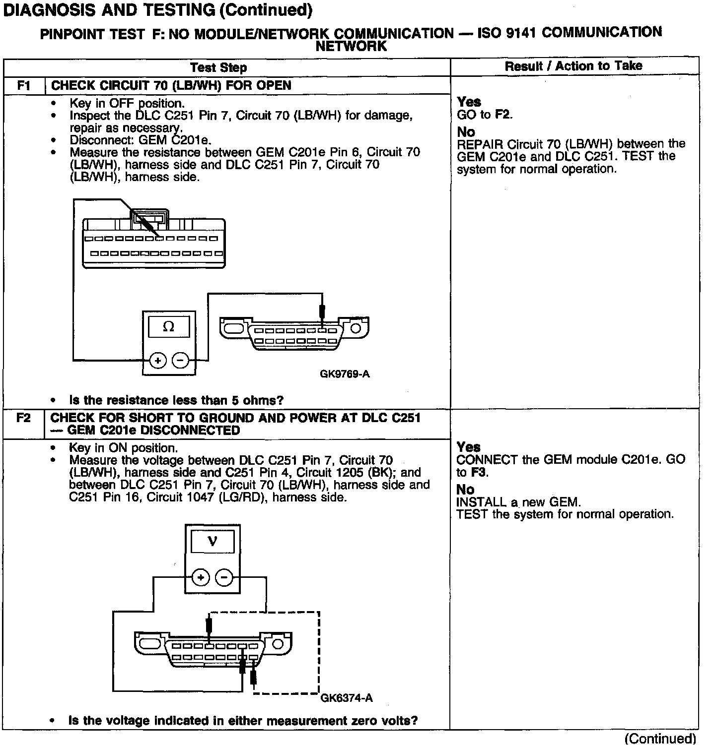 PINPOINT TEST F: NO MODULE/NETWORK COMMUNICATION - ISO 9141 COMMUNICATION NETWORK