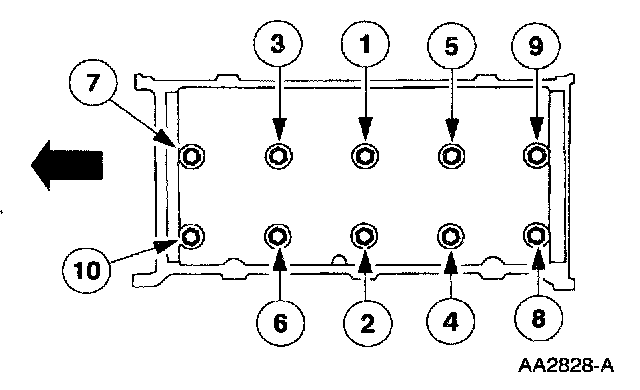 Supercharger and CAC cooler assembly-to-lower intake manifold bolts, in the sequence shown, in two stages.