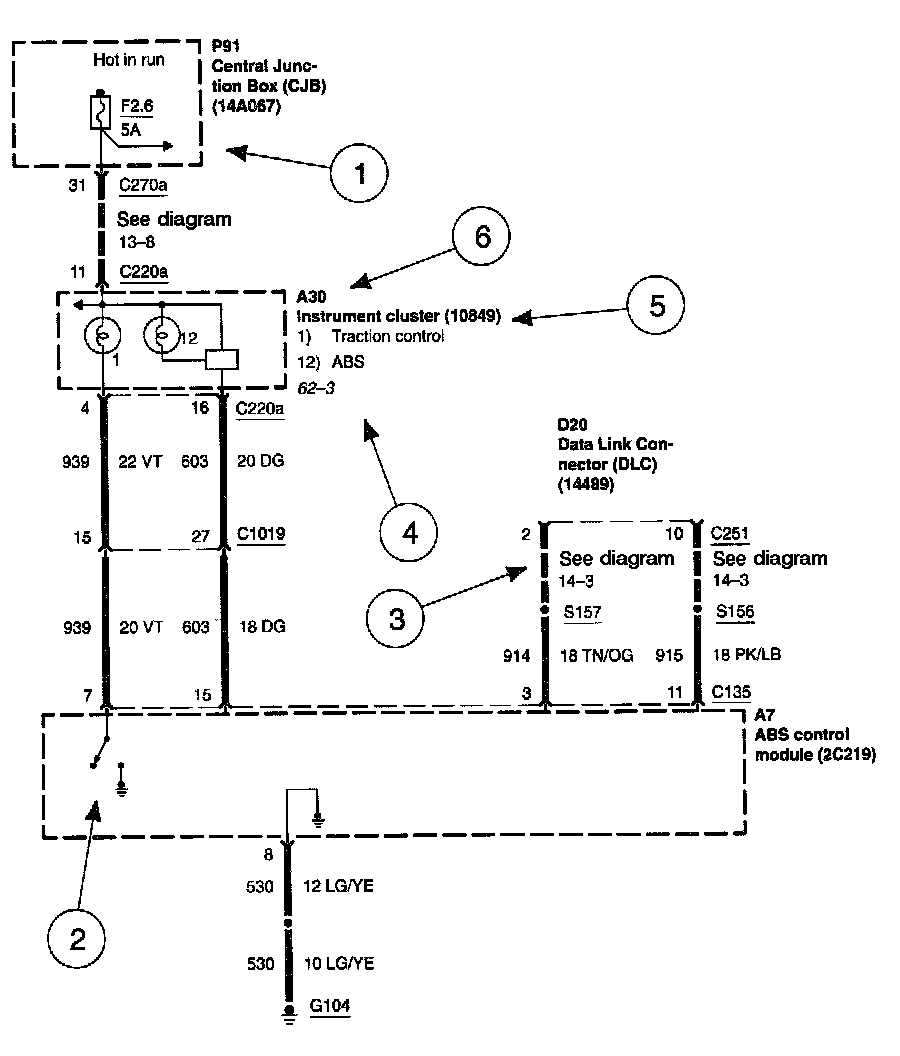 Each set of diagrams normally starts with the component that powers the circuit such as a fuse or the ignition switch. Current flow is shown from the power source at the top of the diagram to ground at the bottom of the diagram. In order to concentrate on the essential parts, power supply and ground connections are sometimes simplified by a dashed line in the diagrams. A full representation of the power supply of a fuse or the power distribution from a fuse to various components is given in the Power and Ground Distribution Diagrams. Full representation of the ground connections are shown in the Power and Ground Distribution Diagrams.