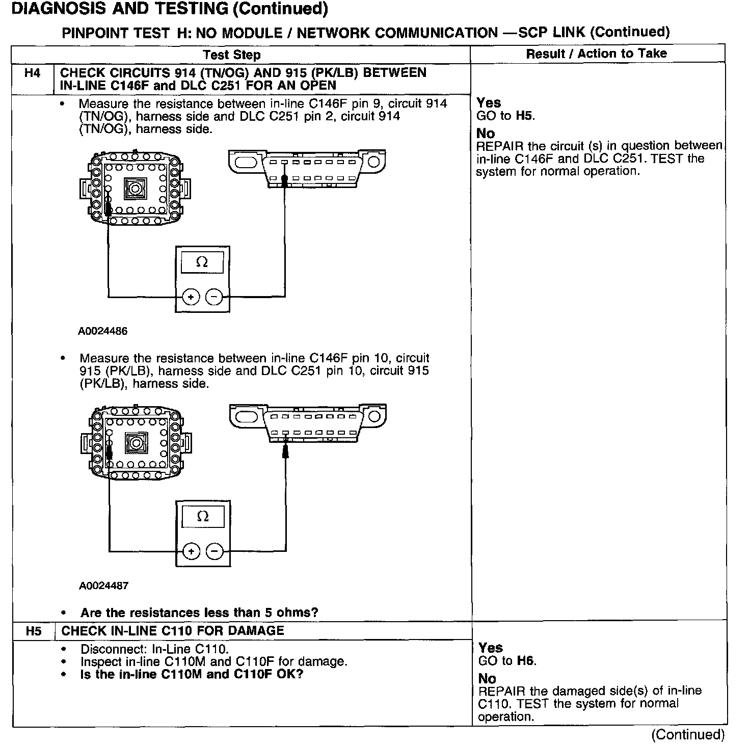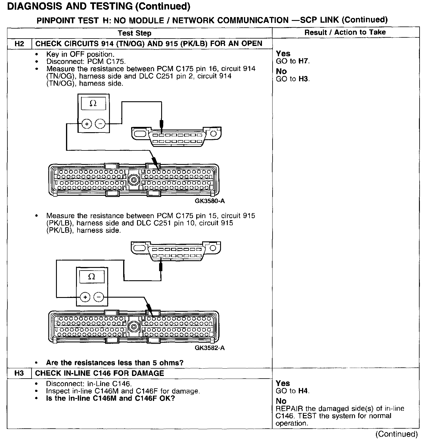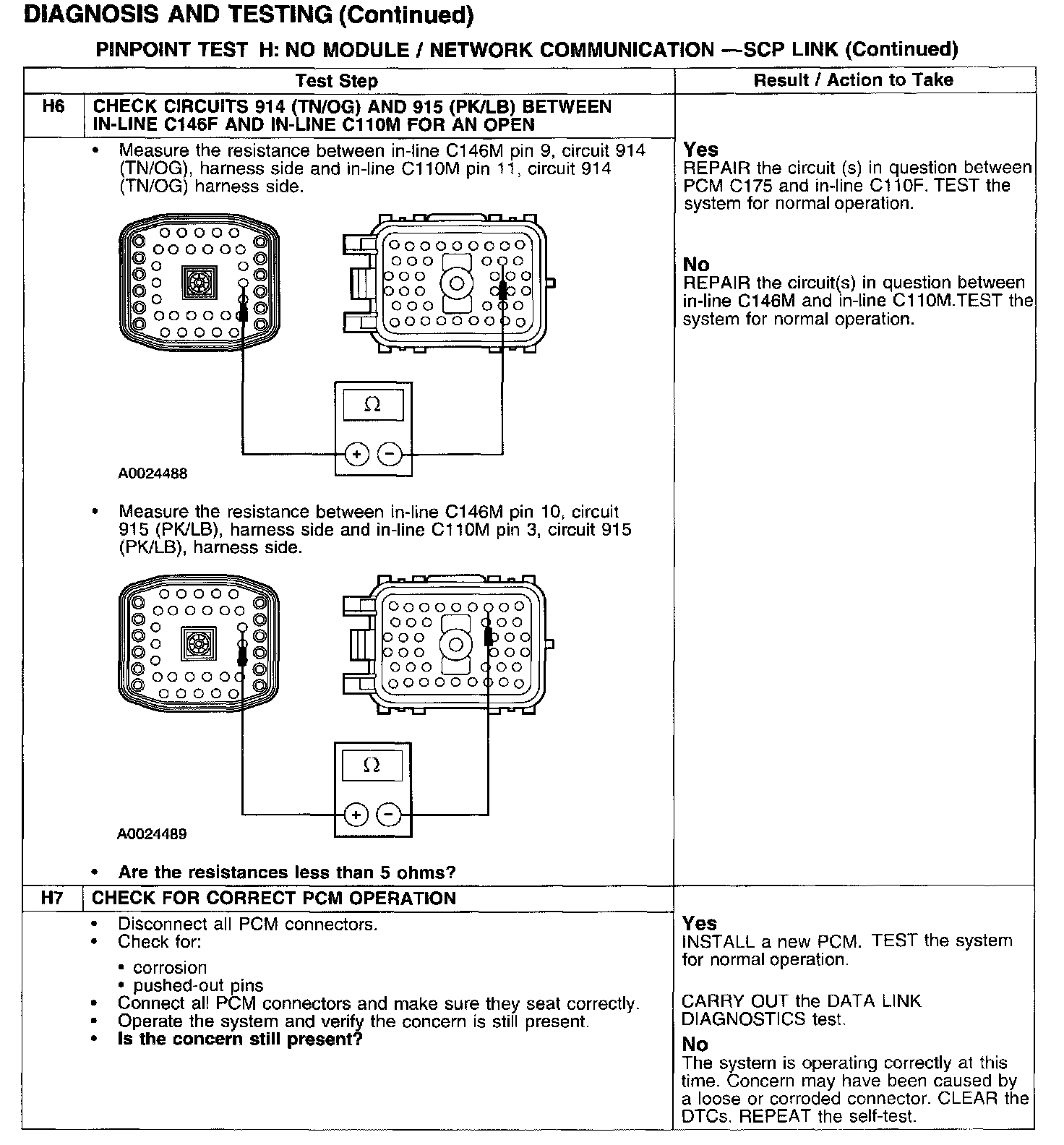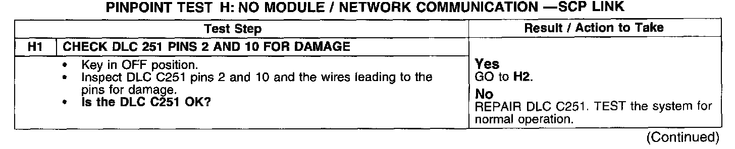 PINPOINT TEST H: NO MODULE / NETWORK COMMUNICATION - SCP LINK