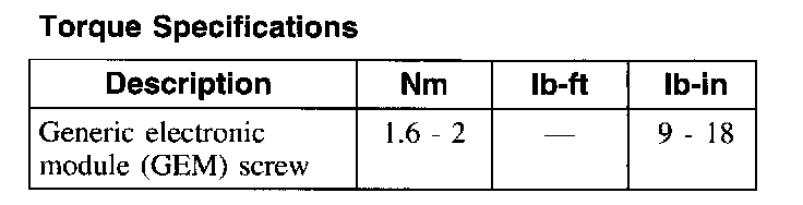 Torque Specifications: