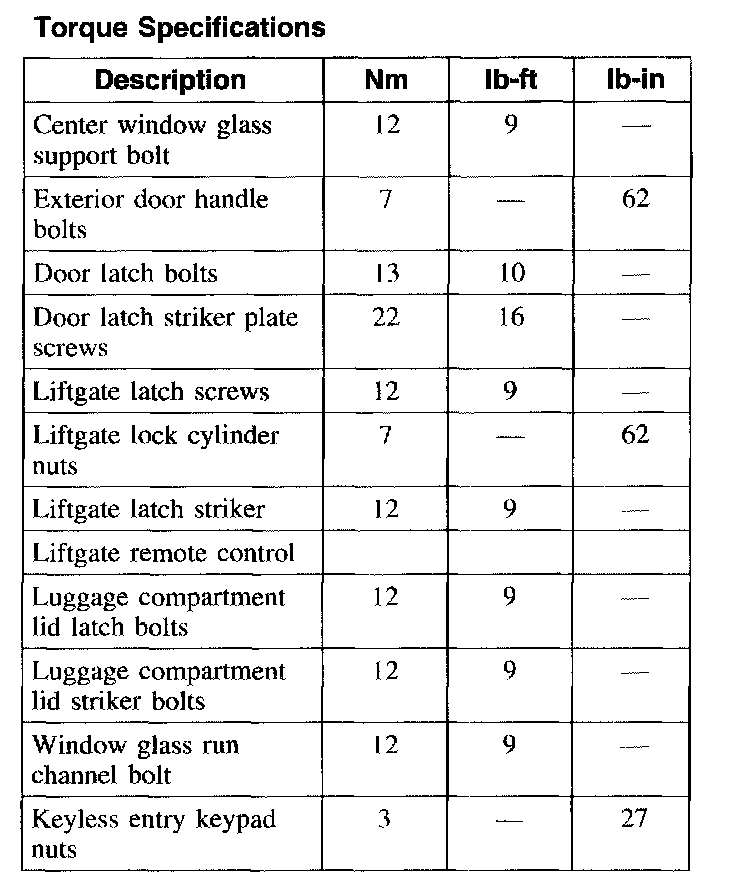 Torque Specifications: