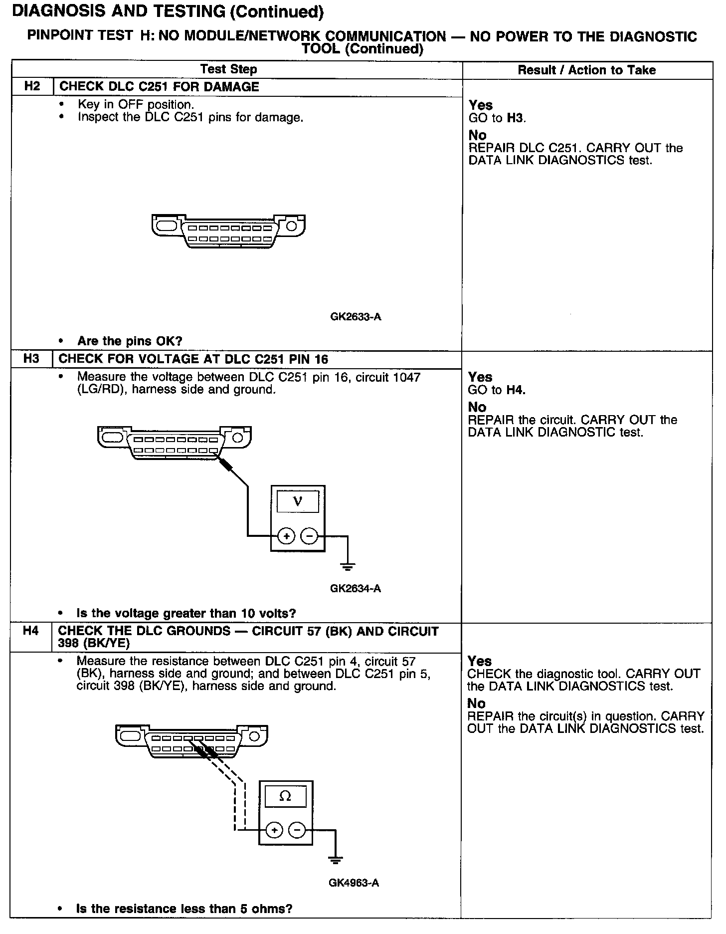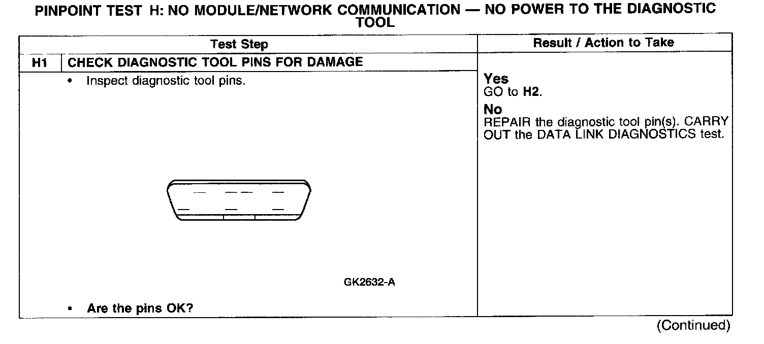 PINPOINT TEST H: NO MODULE/NETWORK COMMUNICATION - NO POWER TO THE DIAGNOSTIC TOOL