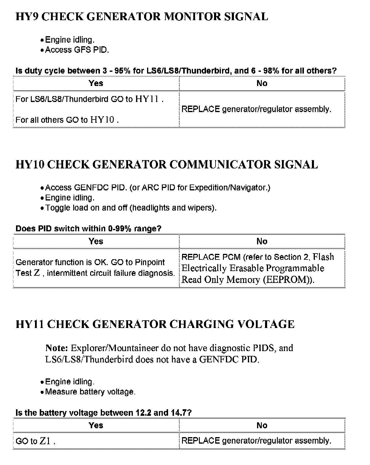 Tests HY: Generator/Regulator System