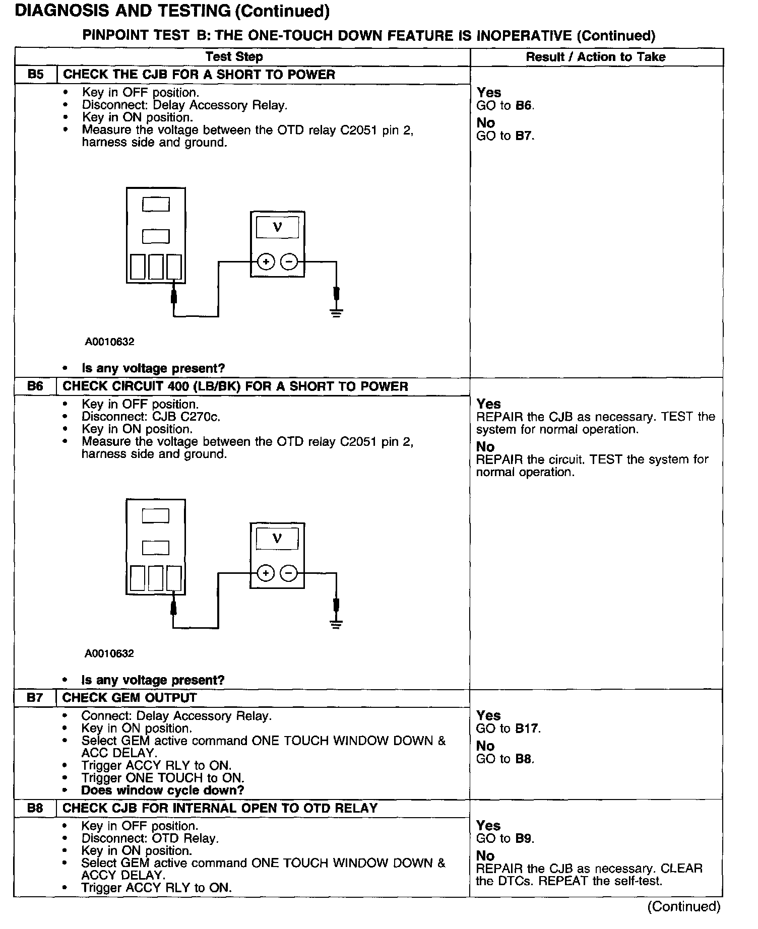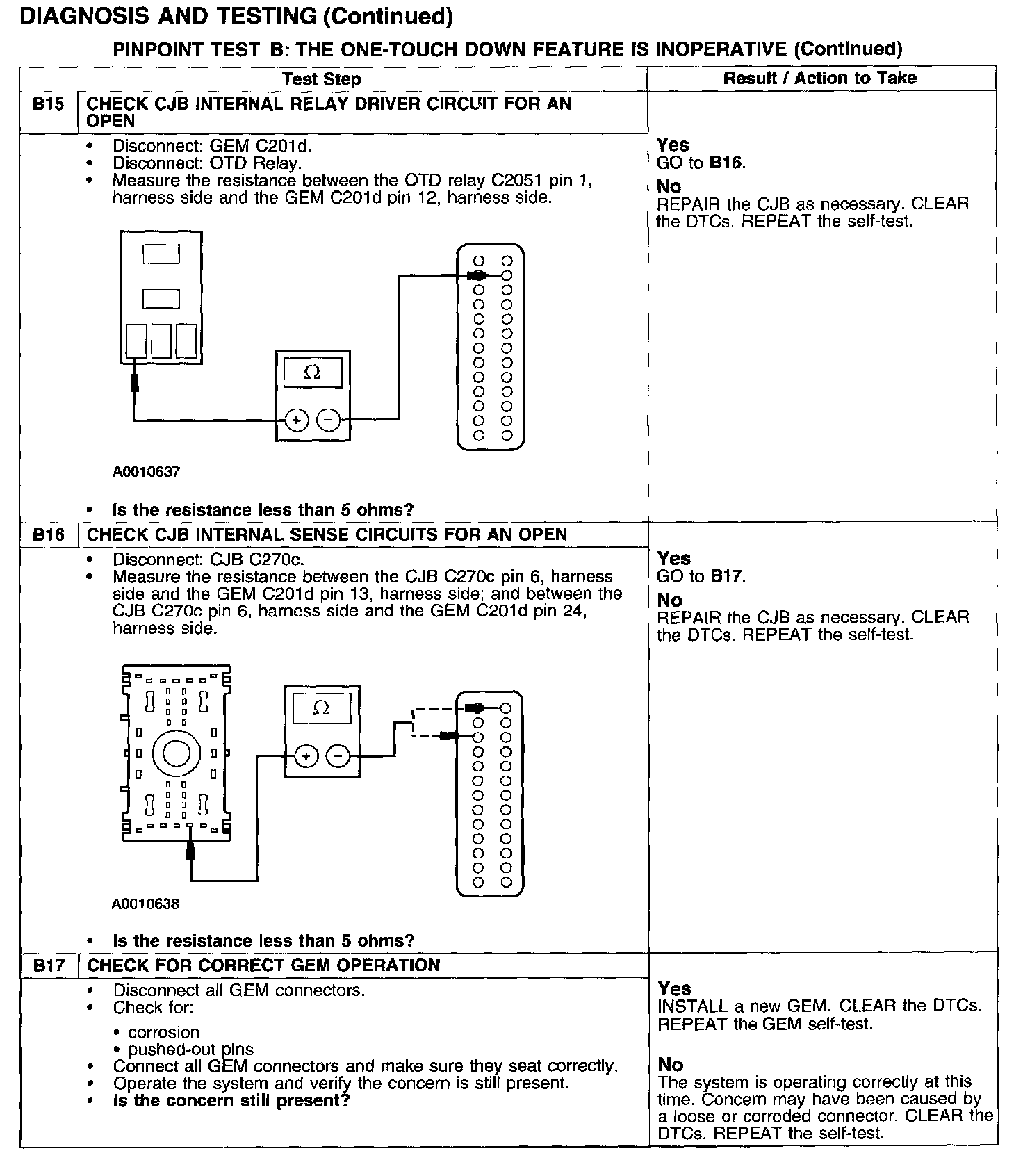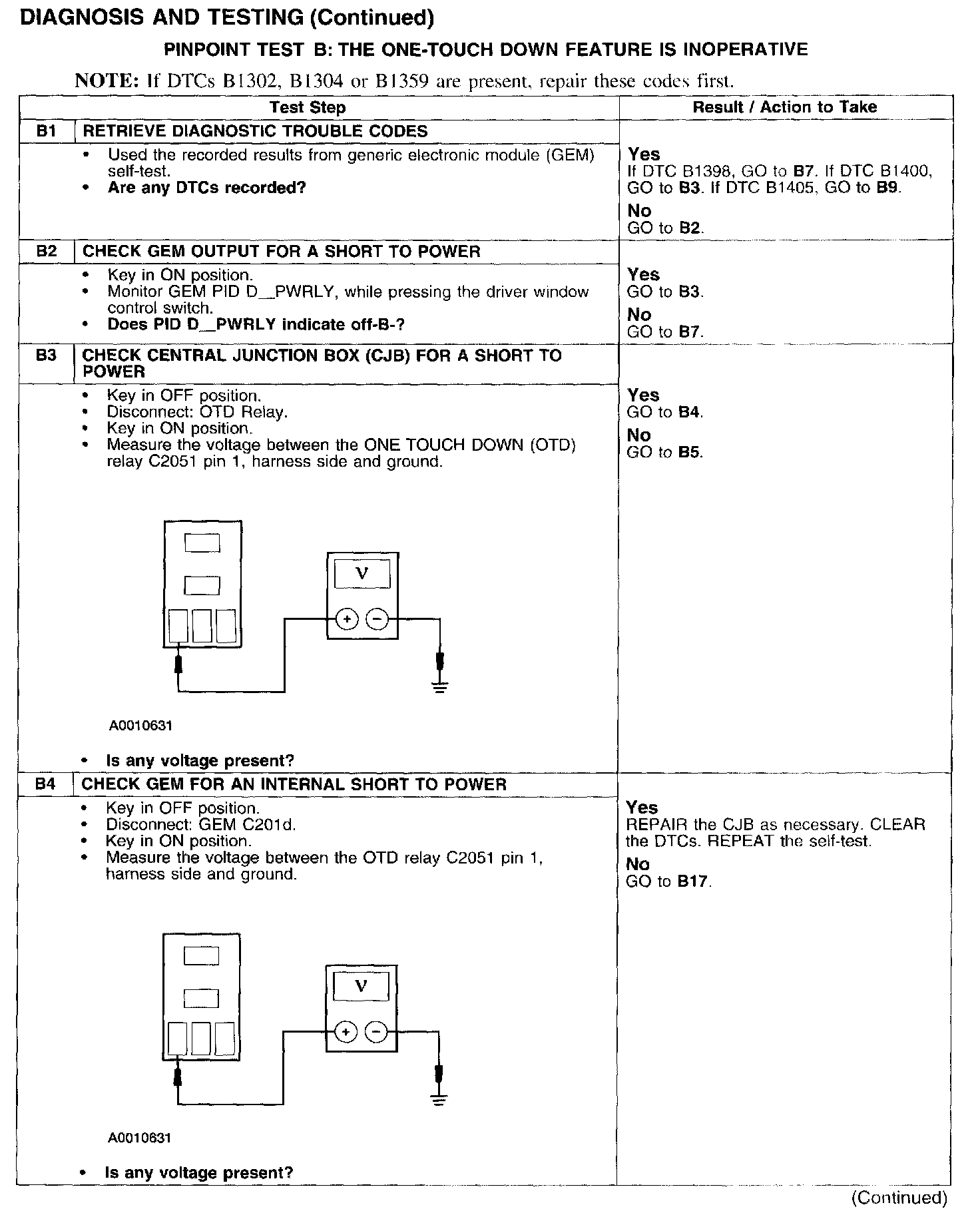 PINPOINT TEST B: THE ONE-TOUCH DOWN FEATURE IS INOPERATIVE