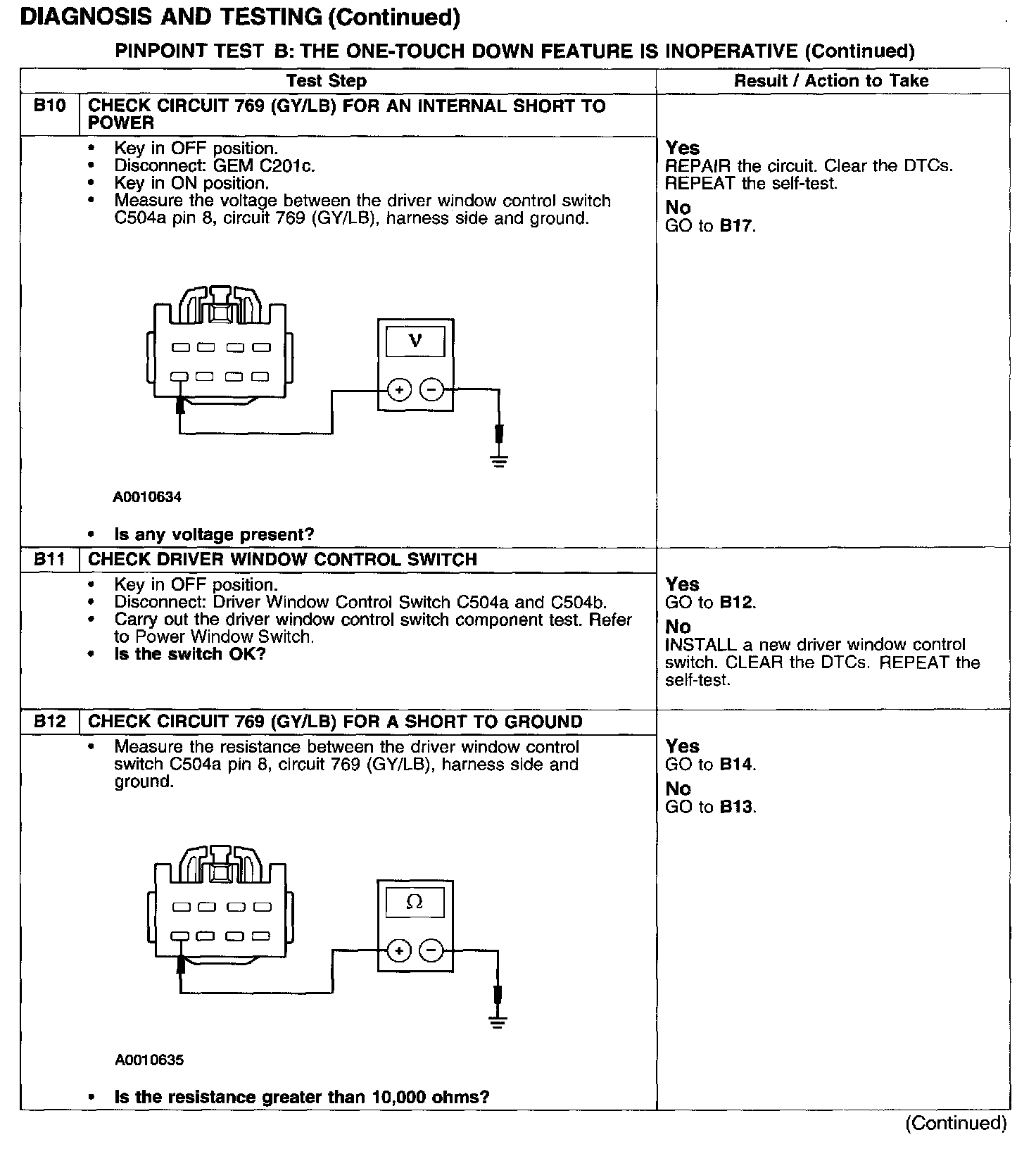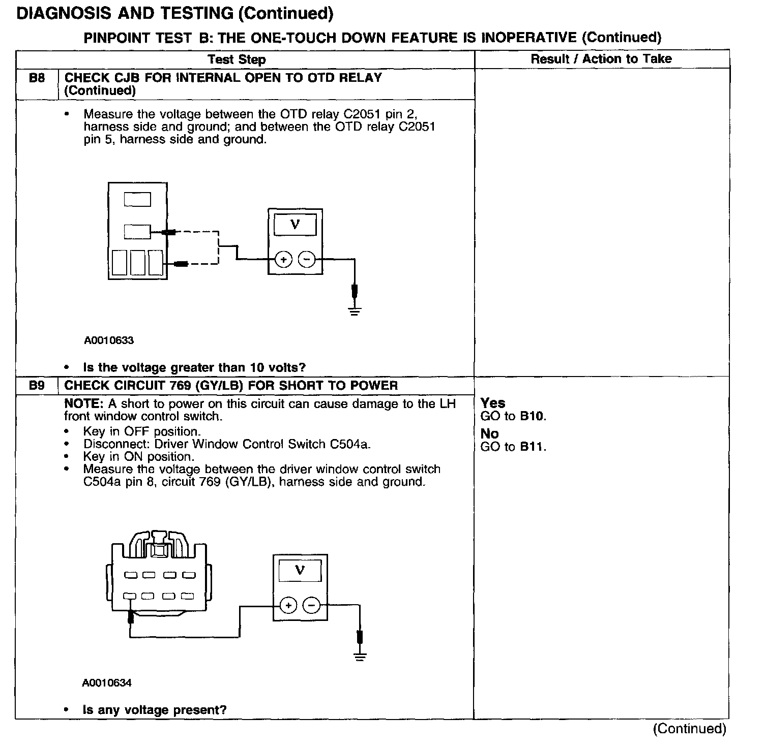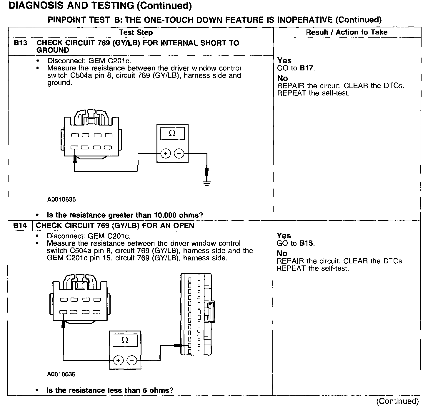 PINPOINT TEST B: THE ONE-TOUCH DOWN FEATURE IS INOPERATIVE