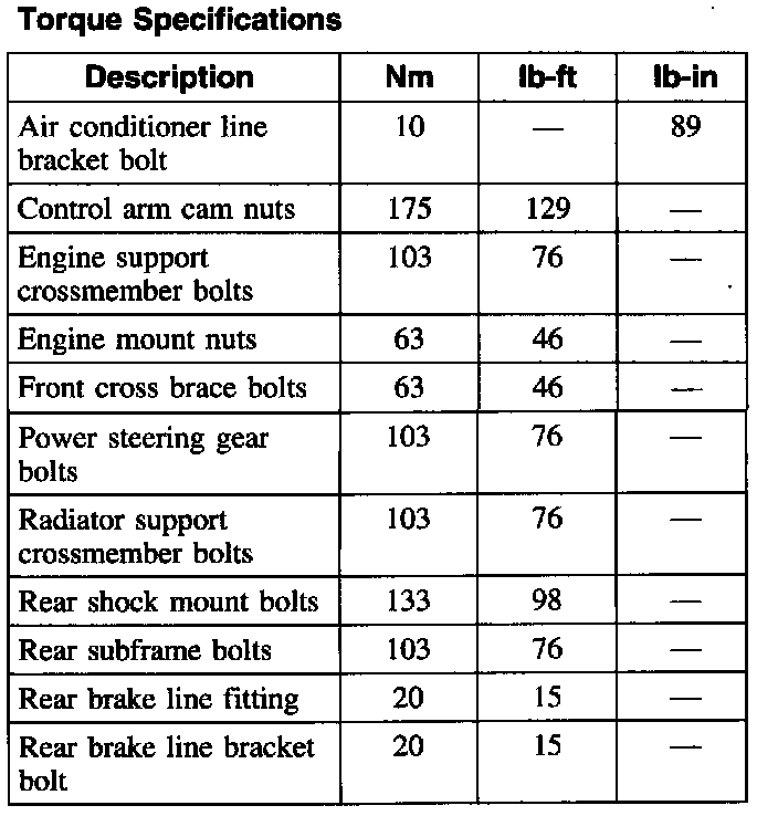 Torque Specifications: