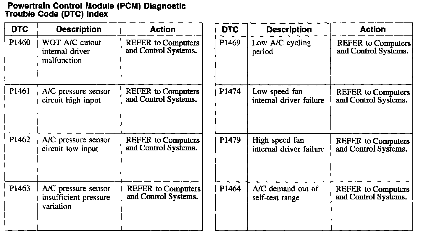 Powertrain Control Module (PCM) Diagnostic Trouble Code Index