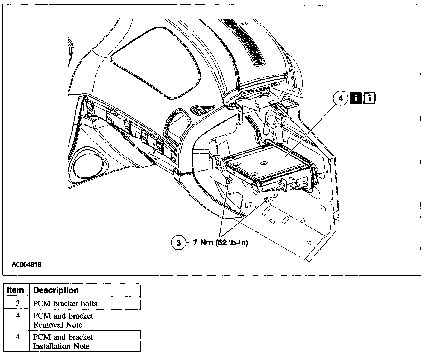 Item 4: PCM and Bracket Removal Note