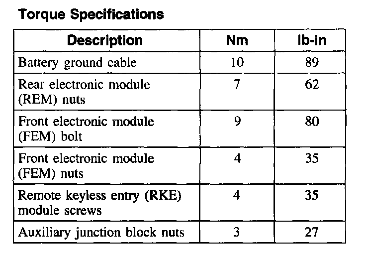 Torque Specifications:
