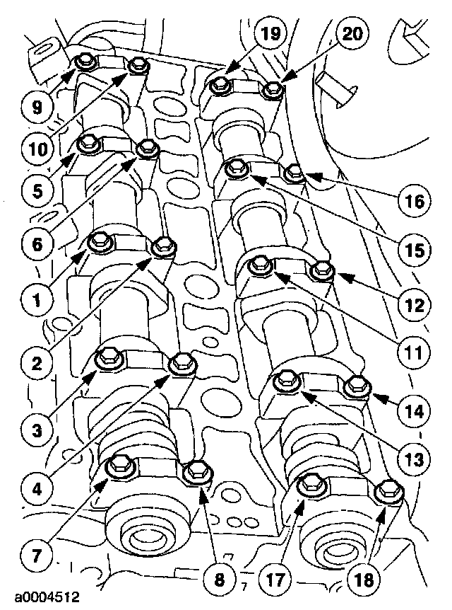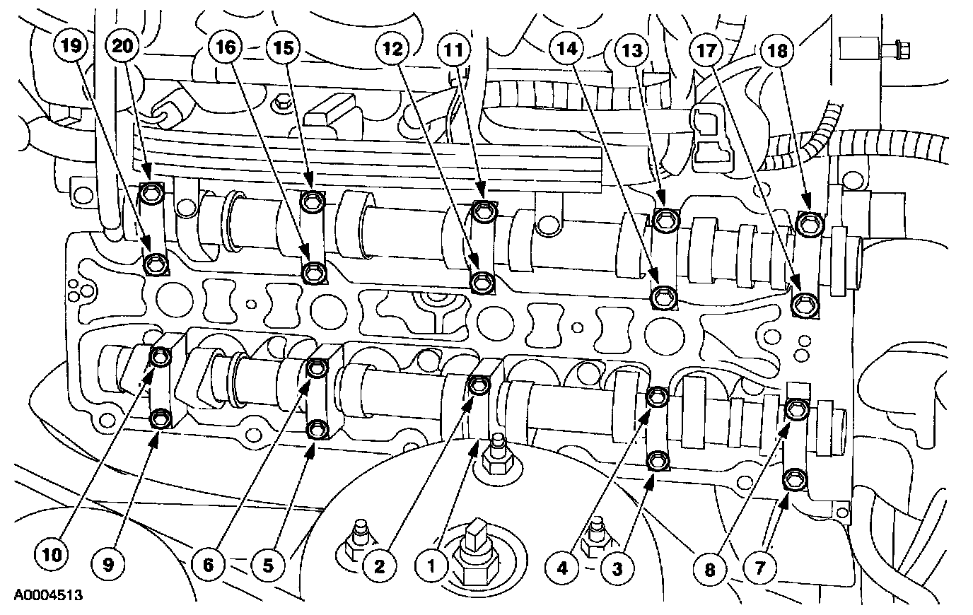 CAUTION: The camshaft bearing caps are positional and must be installed in their original locations and orientation or engine damage can occur.