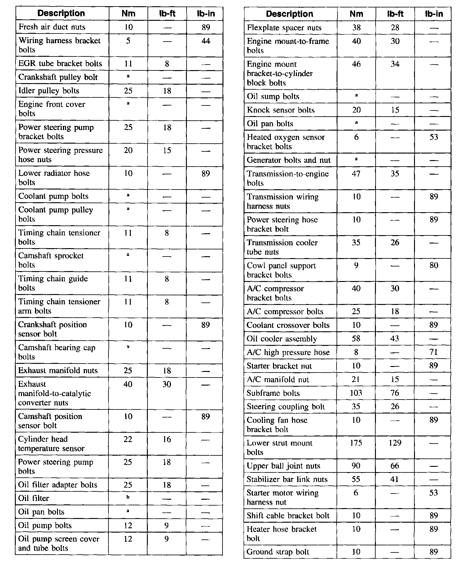 Home >> Ford >> 2003 >> Thunderbird V8-3.9L VIN A >> Repair and Diagnosis >> Specifications >> Mechanical Specifications >> Engine >> System Specifications >> Torque Specifications