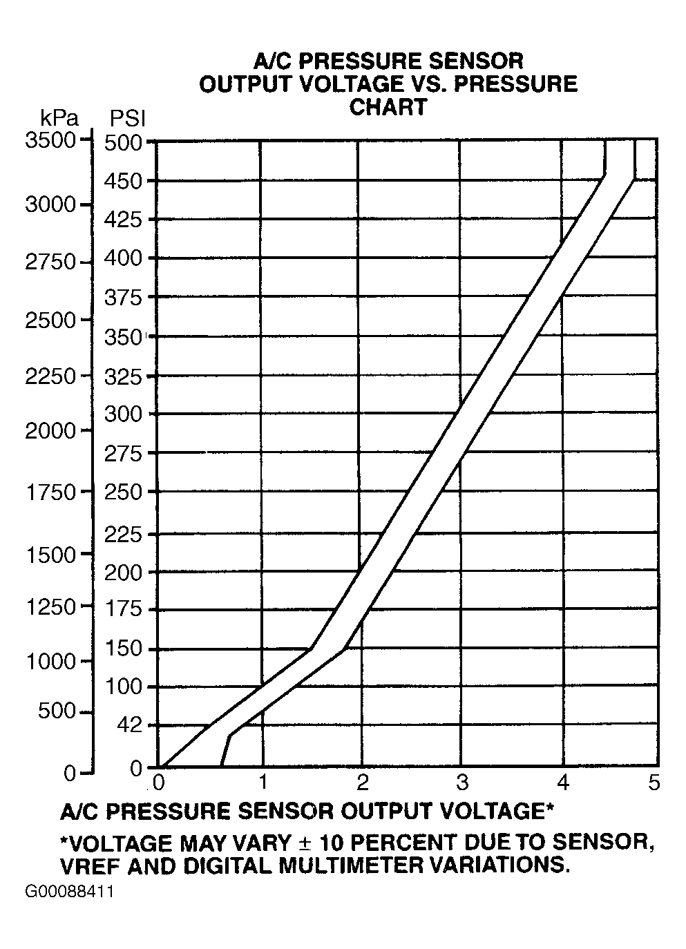 Air Conditioning Pressure (A/C pressure) sensor is located in high pressure (discharge) side of A/C system. A/C pressure sensor provides a voltage signal to PCM that is proportional to A/C pressure. See Fig 1. PCM uses this information for A/C clutch control, fan control and idle speed control.