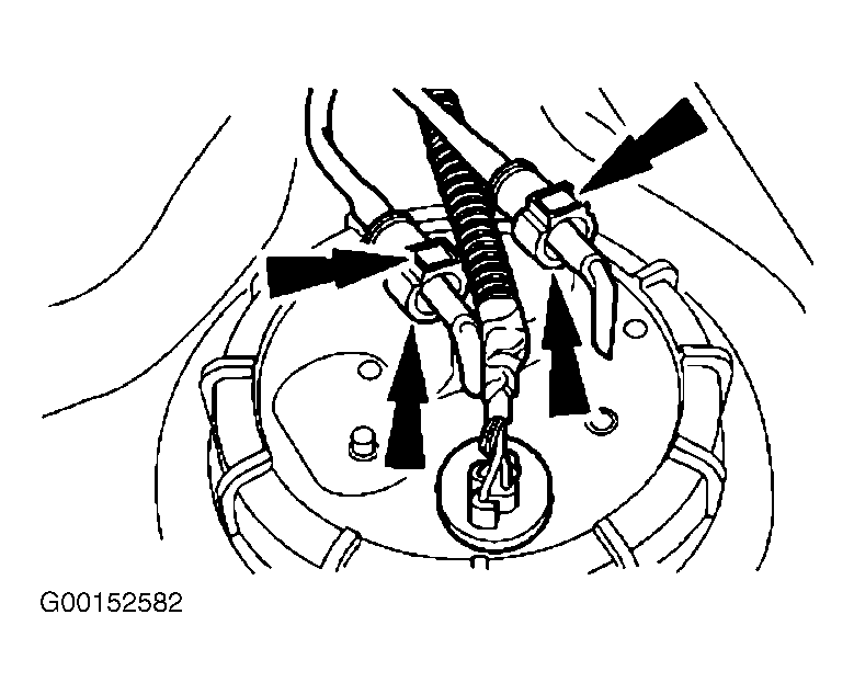 - Remove fuel tank assembly. See FUEL TANK . Clean area around fuel pump mounting flange. Disconnect fuel line fittings from fuel pump module. See Fig 1. If repair or installation of new fuel lines or a new electrical harness is necessary, remove fuel lines or harness from fuel tank retaining clips and remove appropriate assembly.