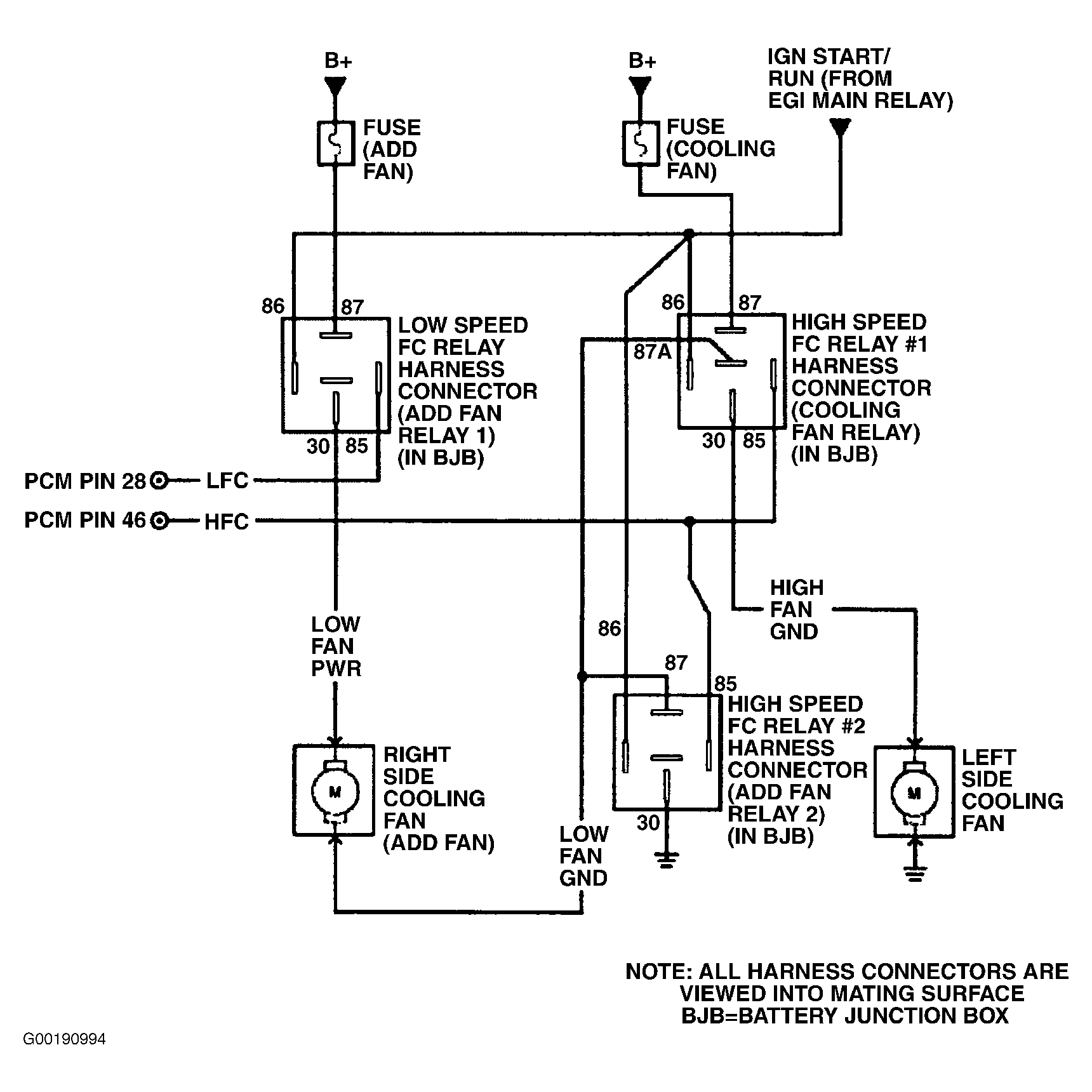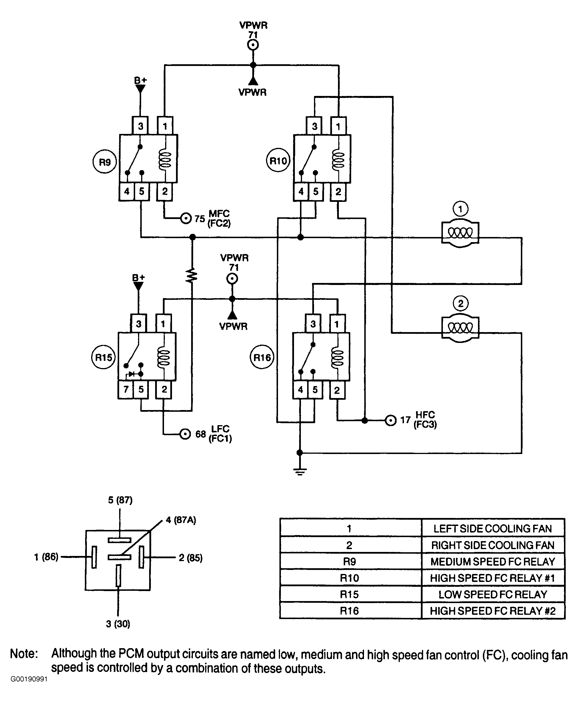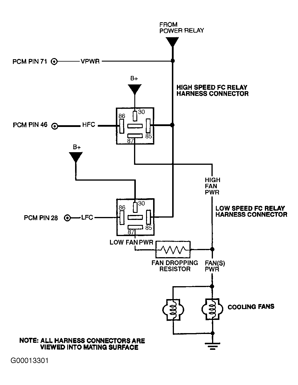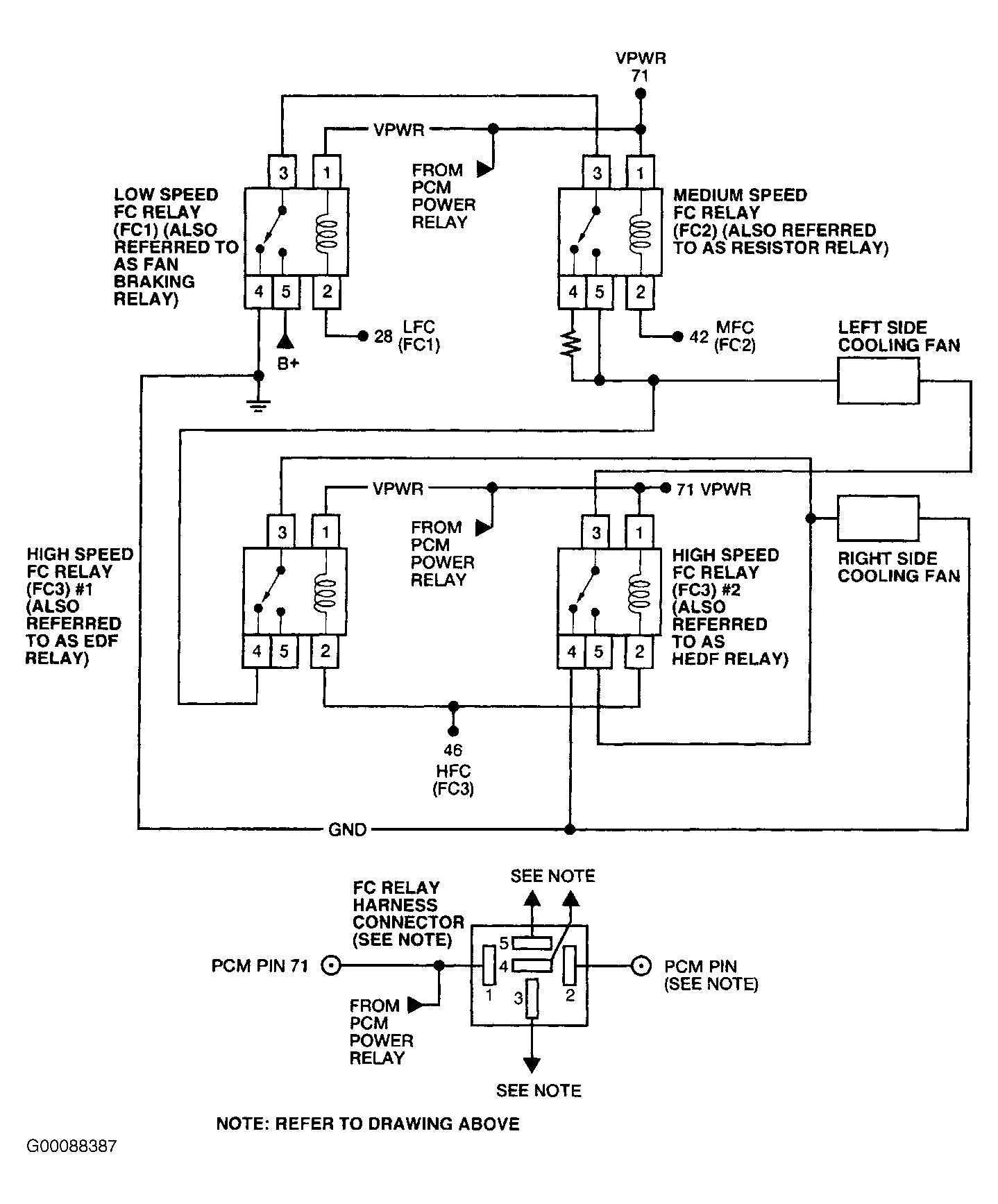 - Shake, wiggle and bend VPWR circuit (IGN START/RUN circuit on Escape) to HFC relay (ADD FAN 2 and MAIN FAN relay on Escape 3.0L).
