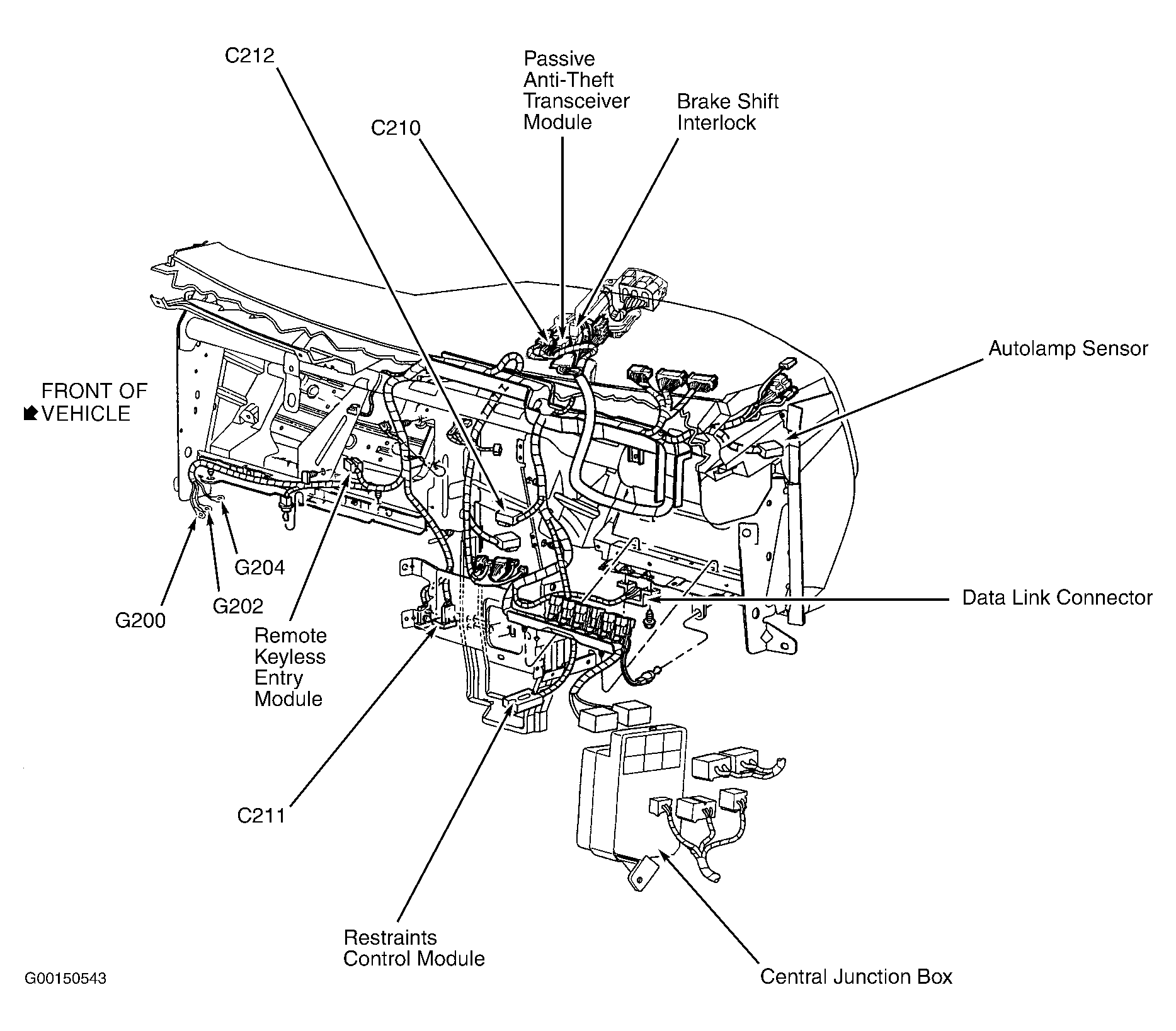 Front Electronic Module Below left side of dash. See Figure .