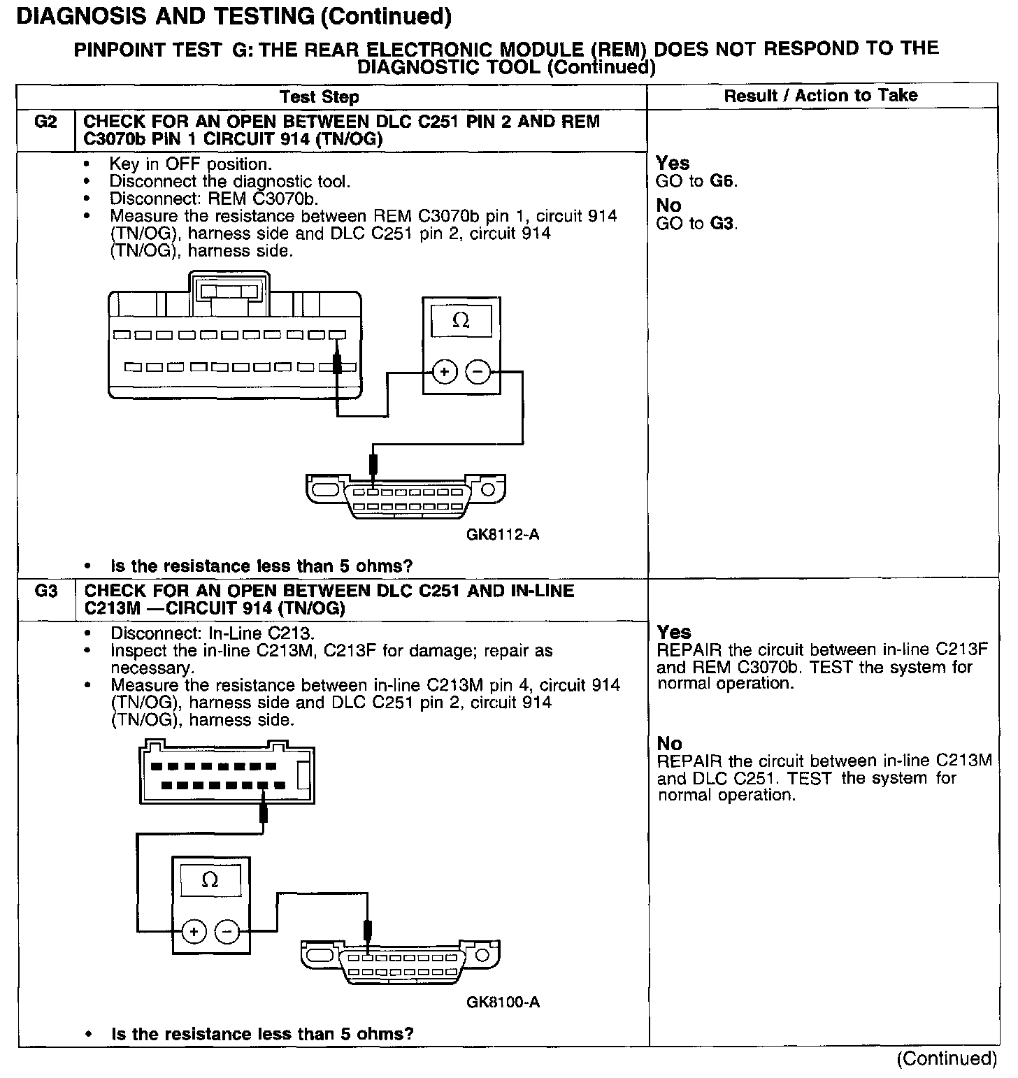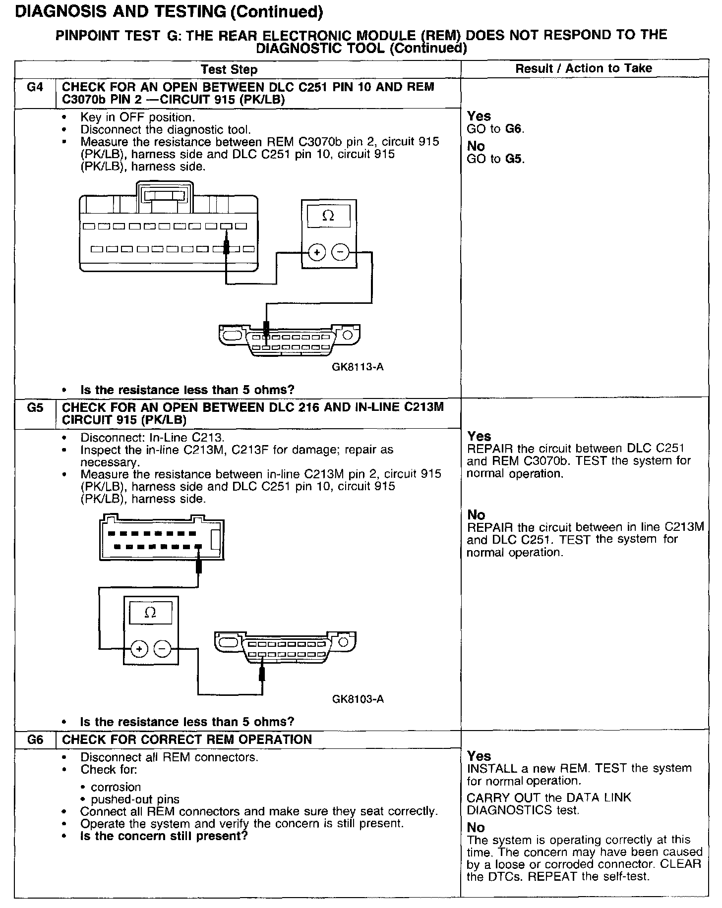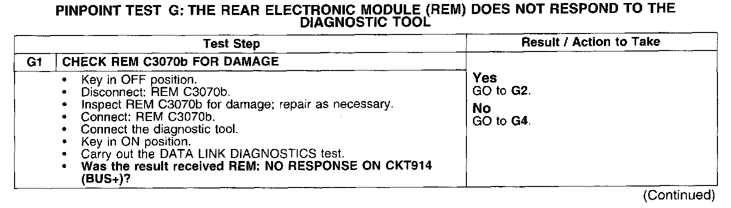 PINPOINT TEST G: THE REAR ELECTRONIC MODULE (REM) DOES NOT RESPOND TO THE DIAGNOSTIC TOOL