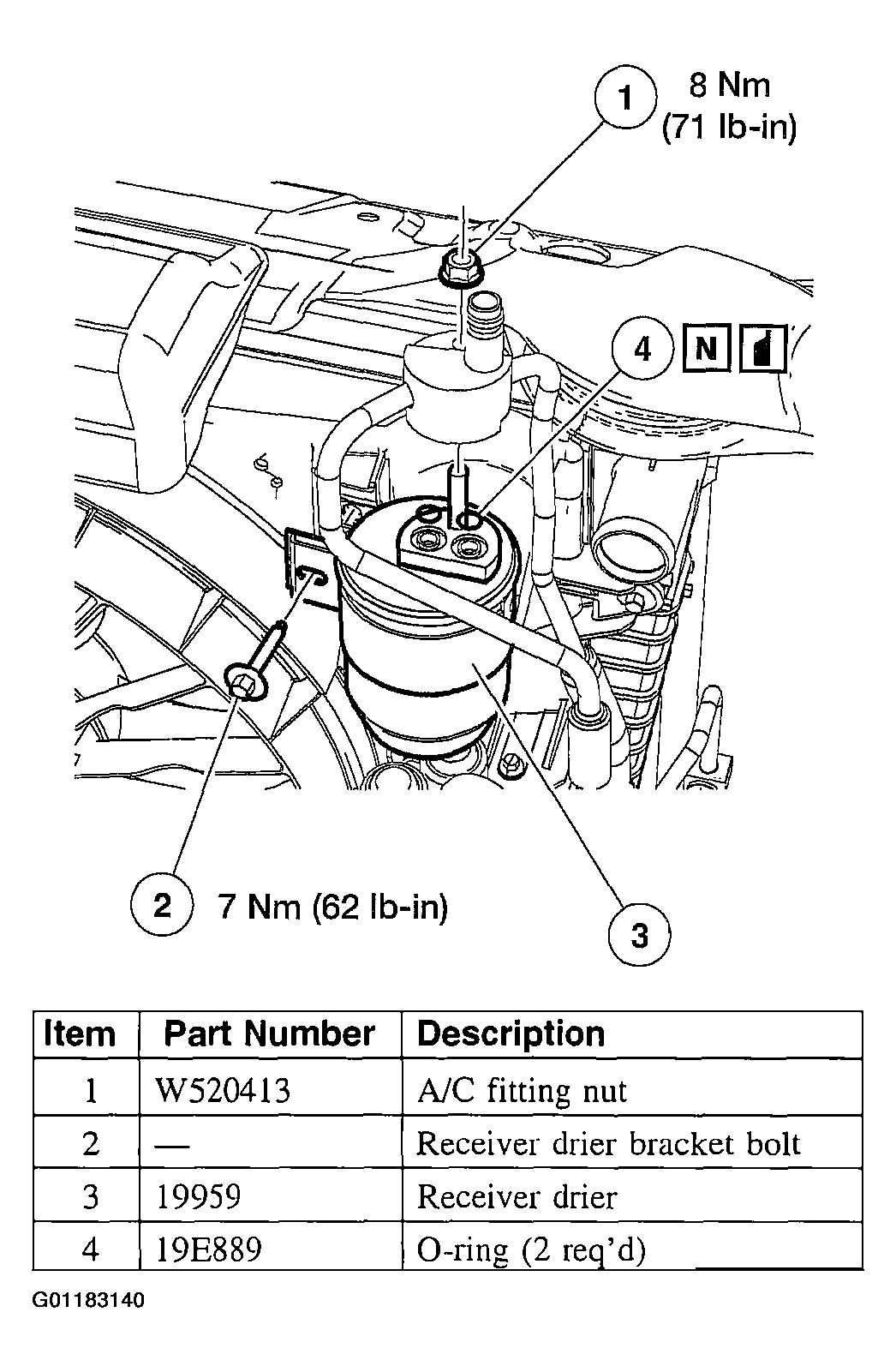 Installation of a new receiver drier is not required when repairing the air conditioning system except when there is physical evidence of contamination from a failed A/C compressor or damage to the receiver drier.