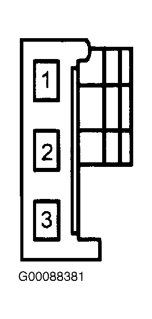 Remove fuel pump relay. Relay is located in battery junction box on right side of luggage compartment. Turn ignition switch to ON position. Using a DVOM, measure voltage between negative battery terminal and B+ circuit at fuel pump relay cavity No. 3. See Figure. If voltage is more than 10.5 volts, go to next step. If voltage is 10.5 volts or less, insufficient voltage is being supplied to fuel pump relay. Check all related wiring and connectors on B+ circuit to fuel pump relay for corrosion or damage. Repair as necessary.