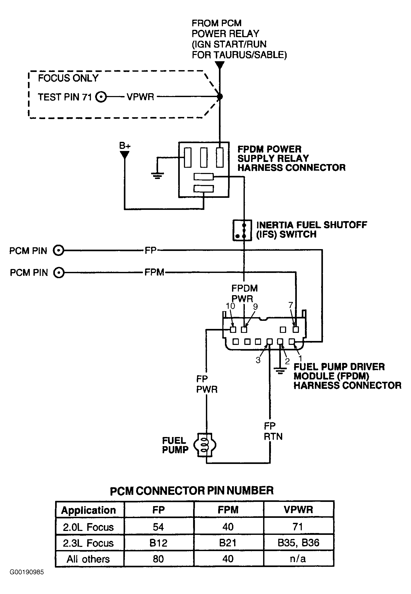 • On Focus, Sable and Taurus wiggle and bend B+ and GND circuits to FPDM power supply relay.