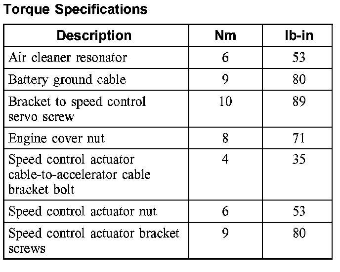 Torque Specifications: