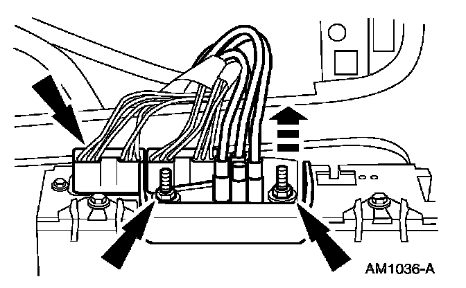 - Disconnect the wire harness connectors and remove the EATC module.