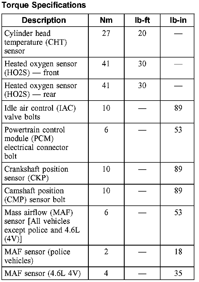 Torque Specifications: