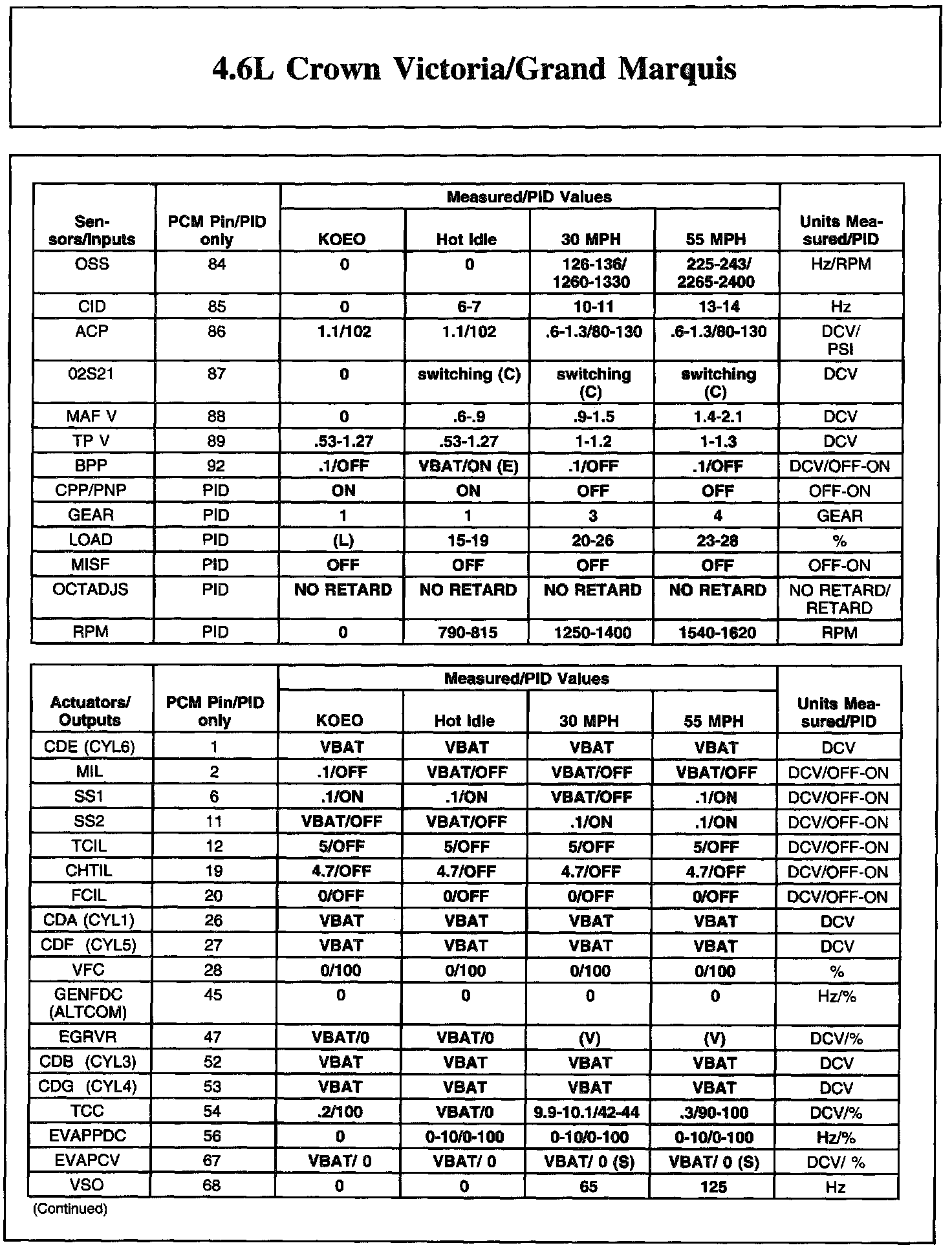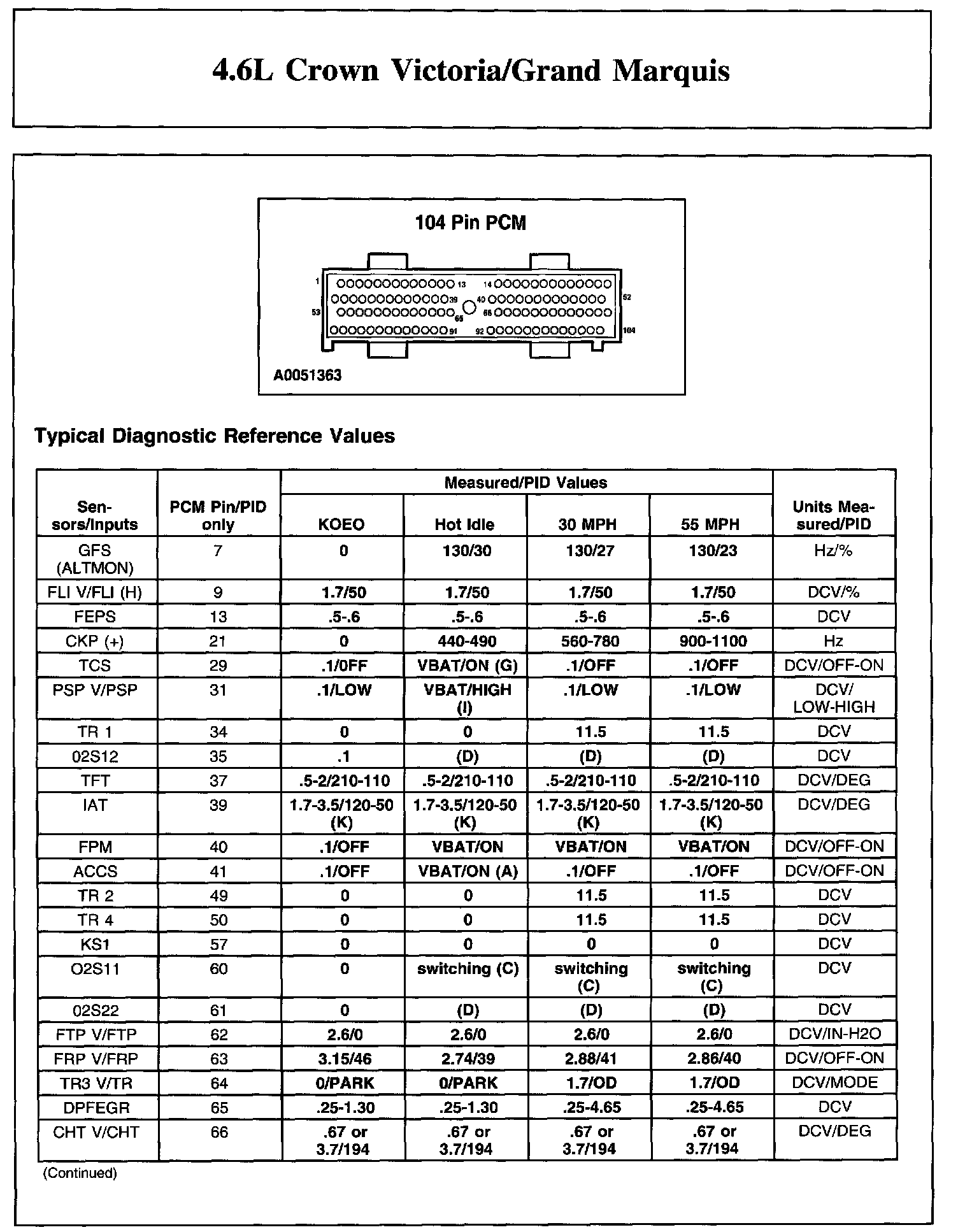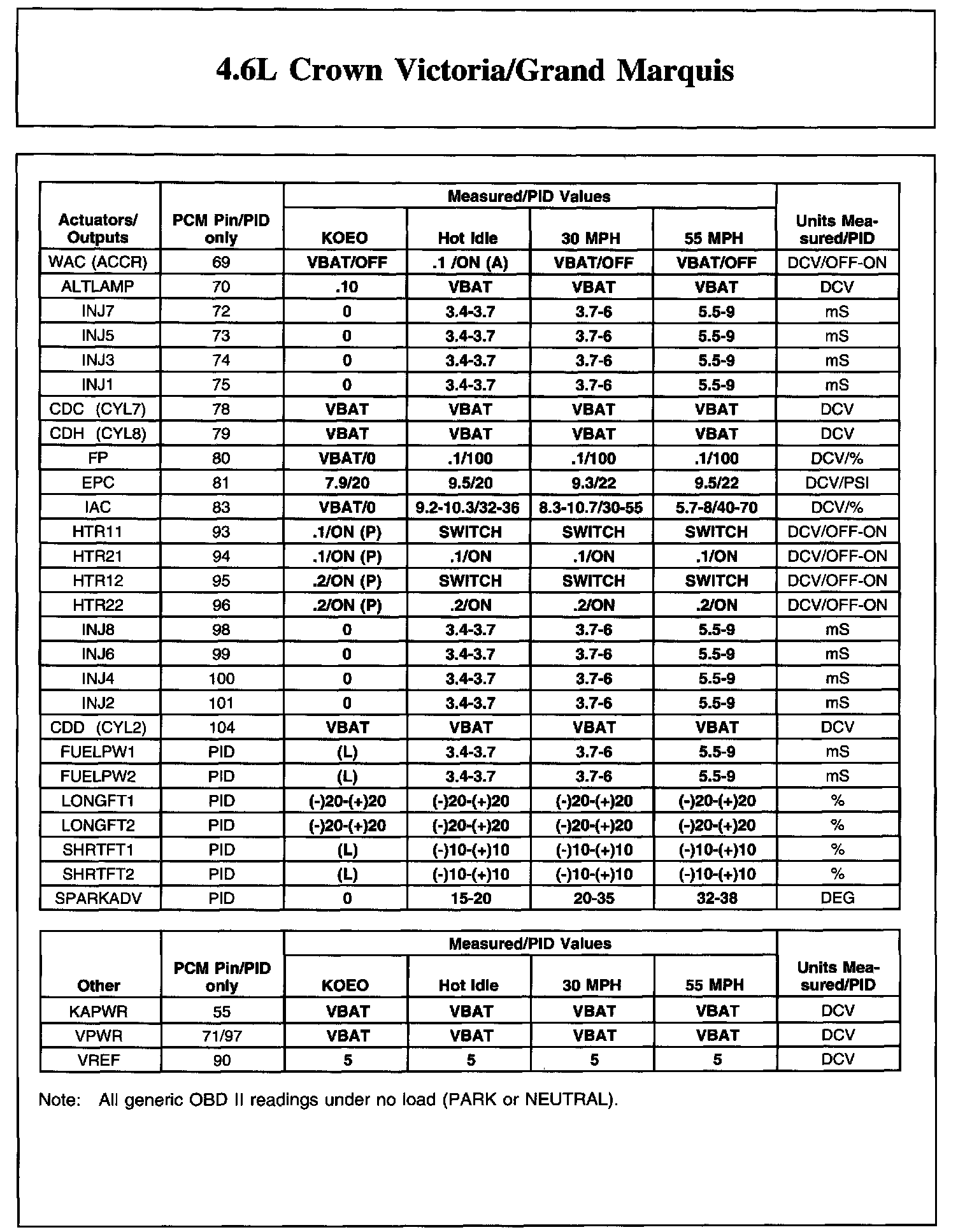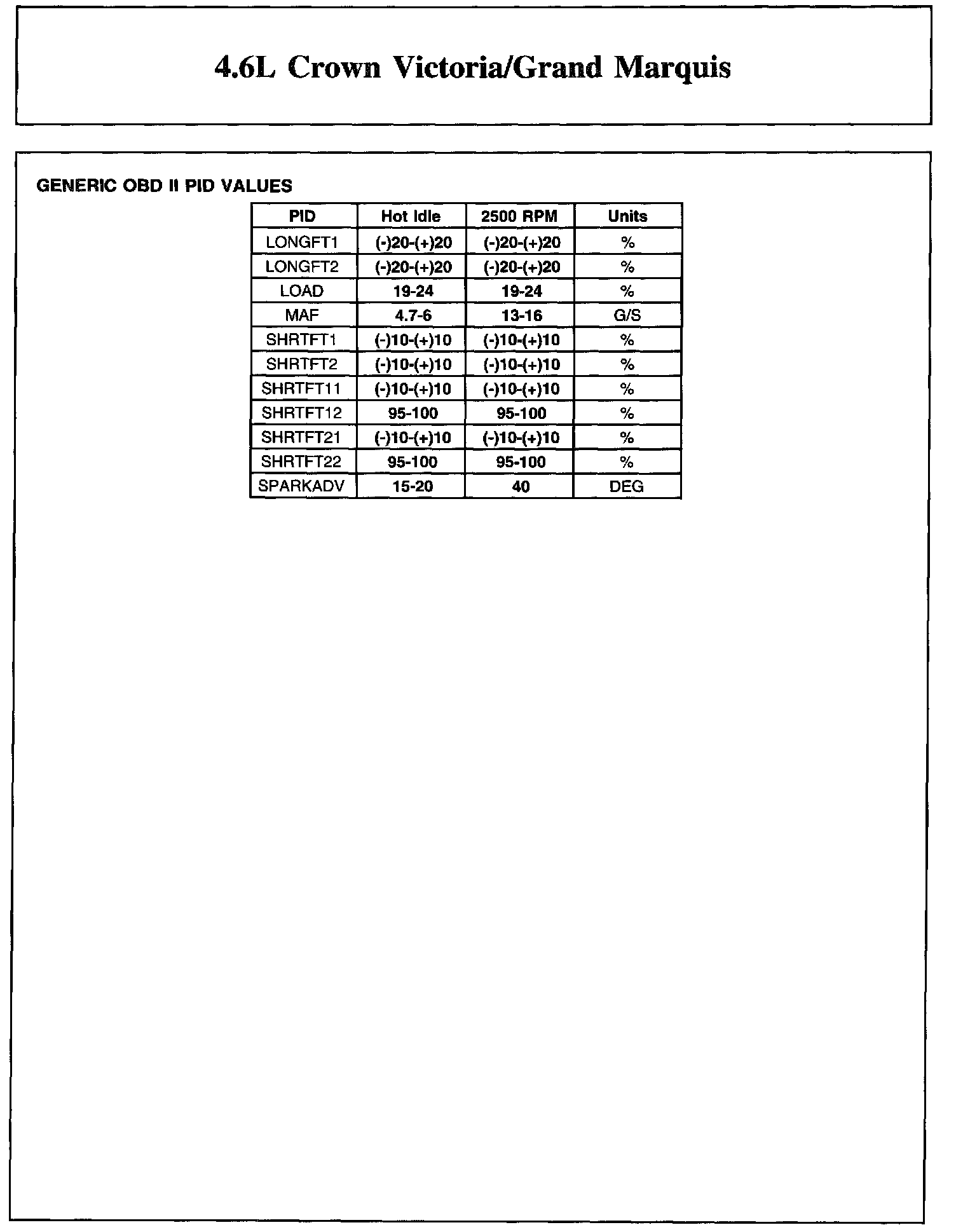 Home >> Ford >> 2004 >> Crown Victoria V8-4.6L VIN W >> Repair and Diagnosis >> Powertrain Management >> Computers and Control Systems >> Testing and Inspection >> Scan Tool Testing and Procedures >> Reference Values >> Typical Diagnostic Reference Values
