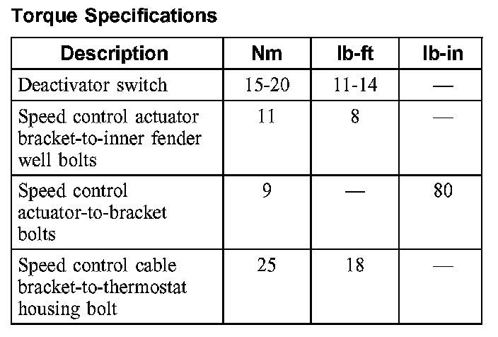 Torque Specifications:
