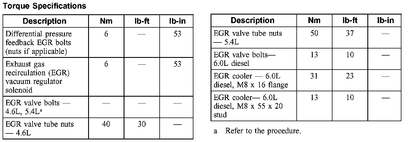 Torque Specifications:
