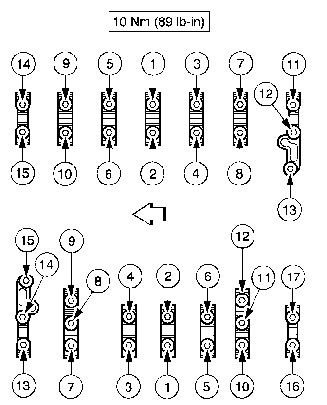 Tighten the bolts in the sequence shown 10 Nm (89 inch lbs.)