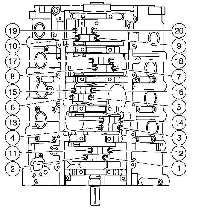 Tighten the cylinder head bolts in three stages in the sequence shown.