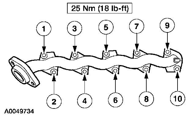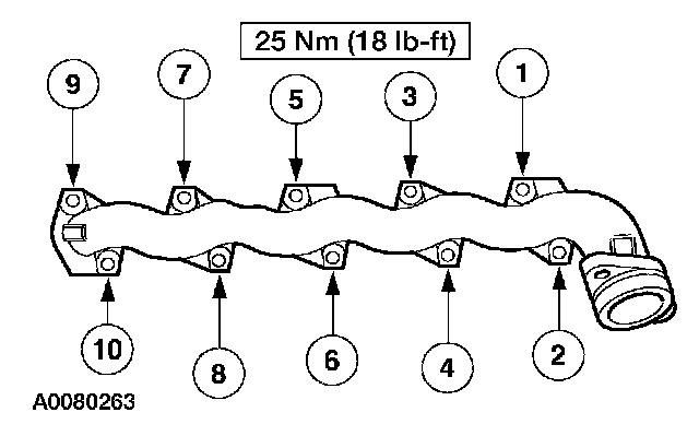 Exhaust manifold LH nuts 25 Nm (18 ft. lbs.)