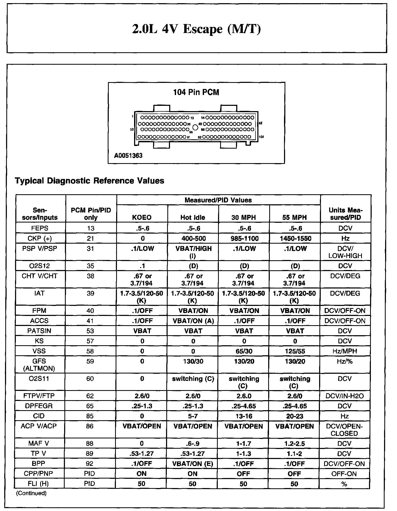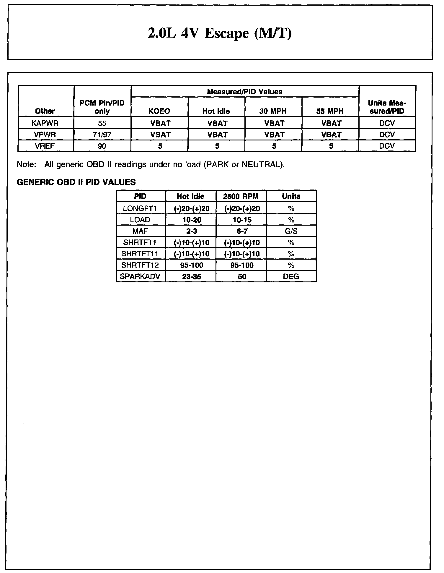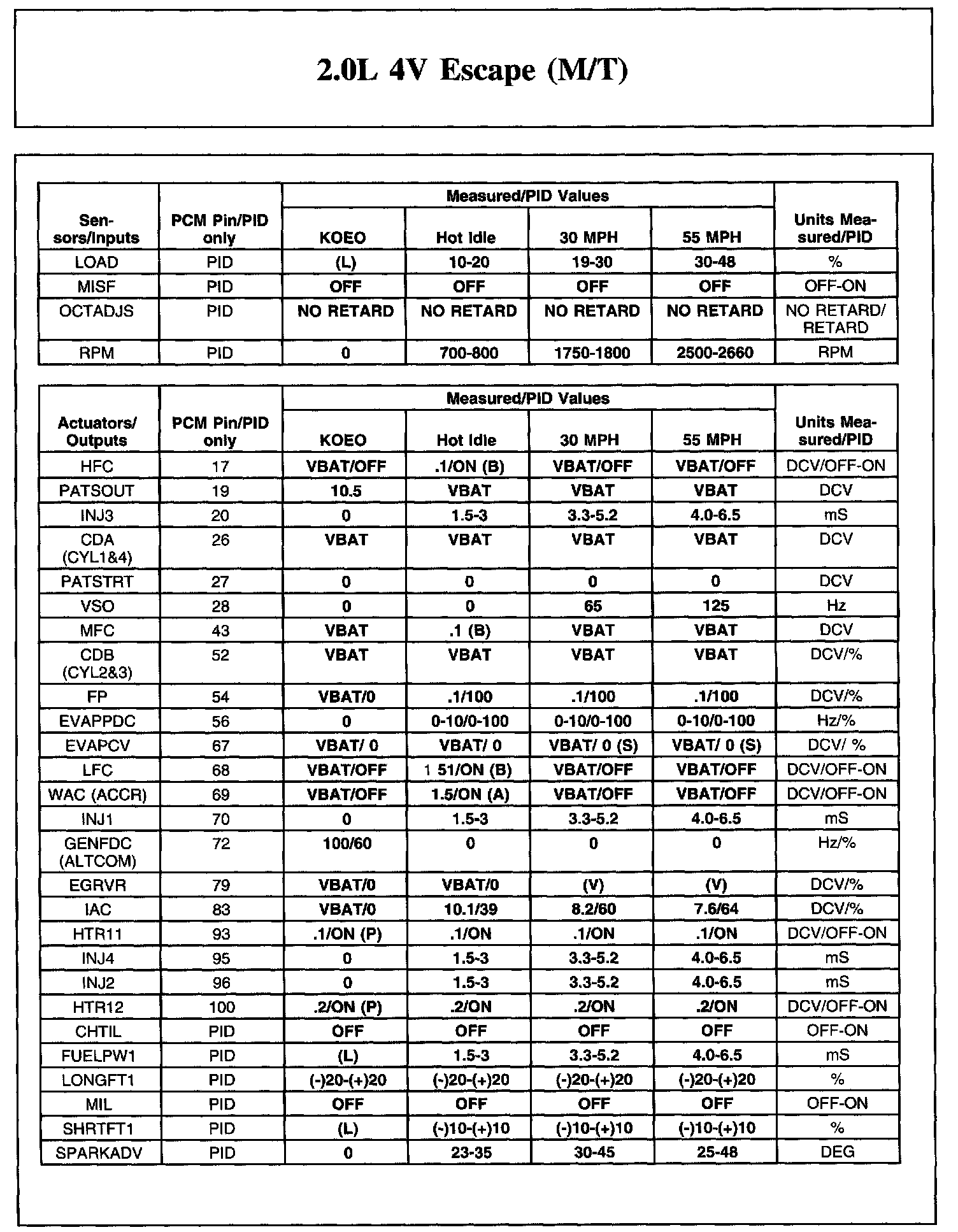 The Typical Diagnostic Reference Value Charts do not display fault PIDs. These are PIDs which indicate a hard fault with the circuit. They display a value of "YES" or "NO" and are PIDs ending with an "F".