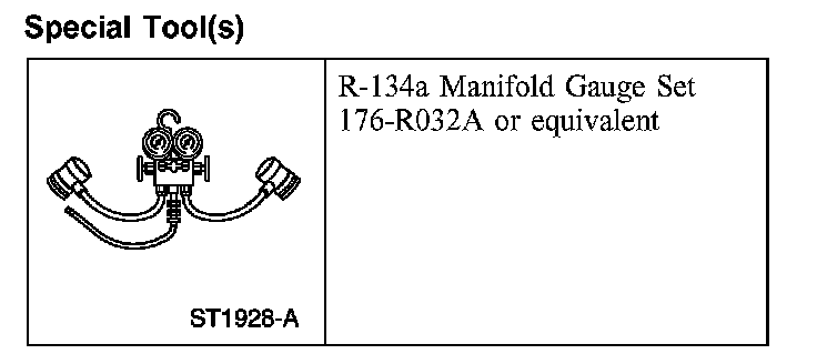 4. Connect the R-134a manifold gauge set low-pressure hose and the R-134a low side quick disconnect to the low-pressure service gauge port valve.