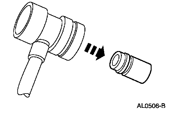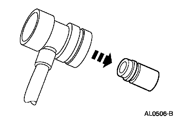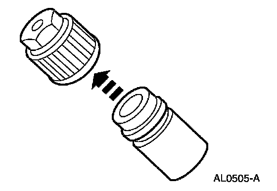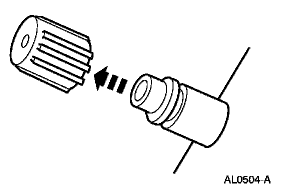2. Remove the A/C charging valve cap from the low-pressure service gauge port valve.