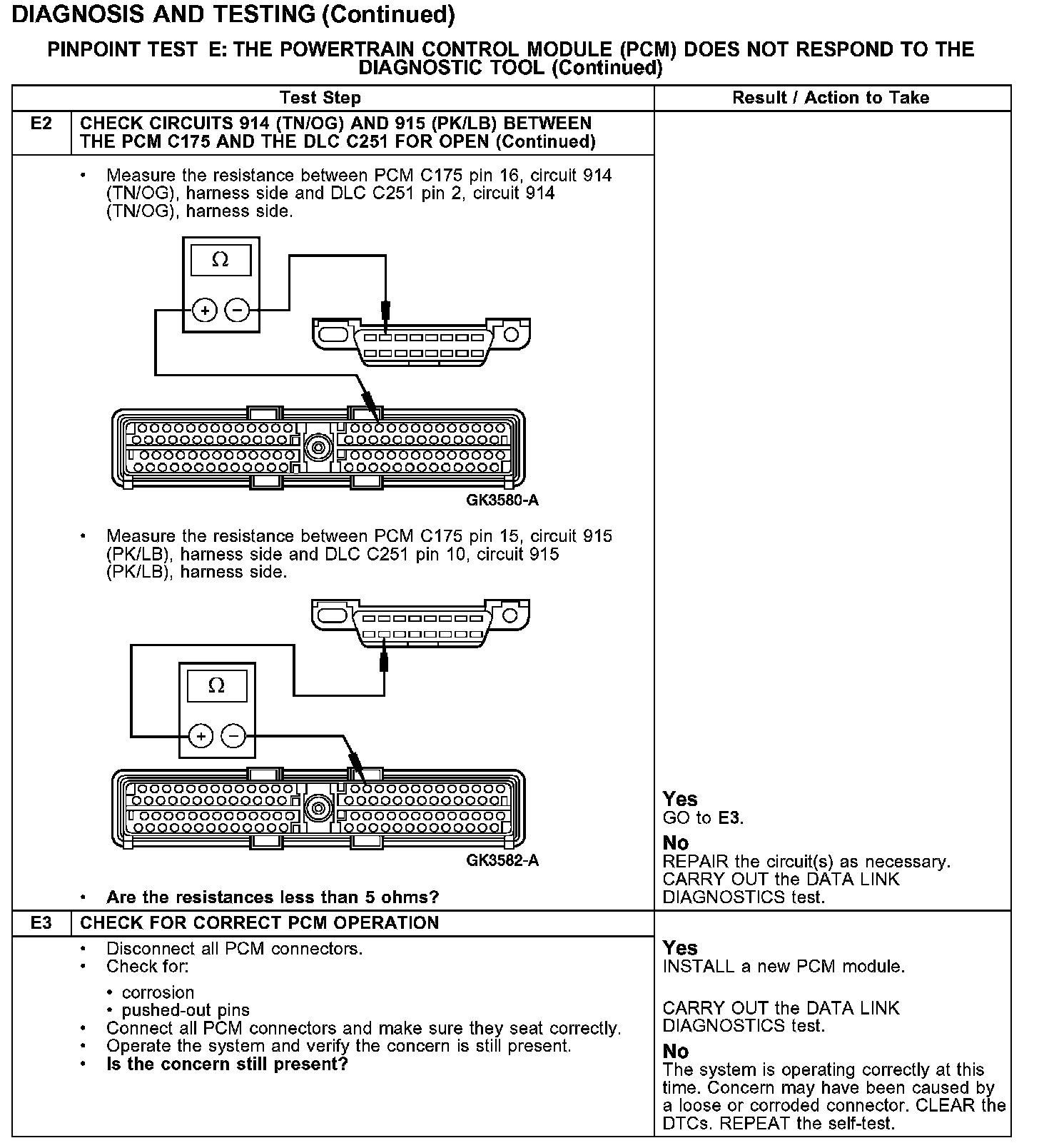 PINPOINT TEST E: THE POWERTRAIN CONTROL MODULE (PCM) DOES NOT RESPOND TO THE DIAGNOSTIC TOOL