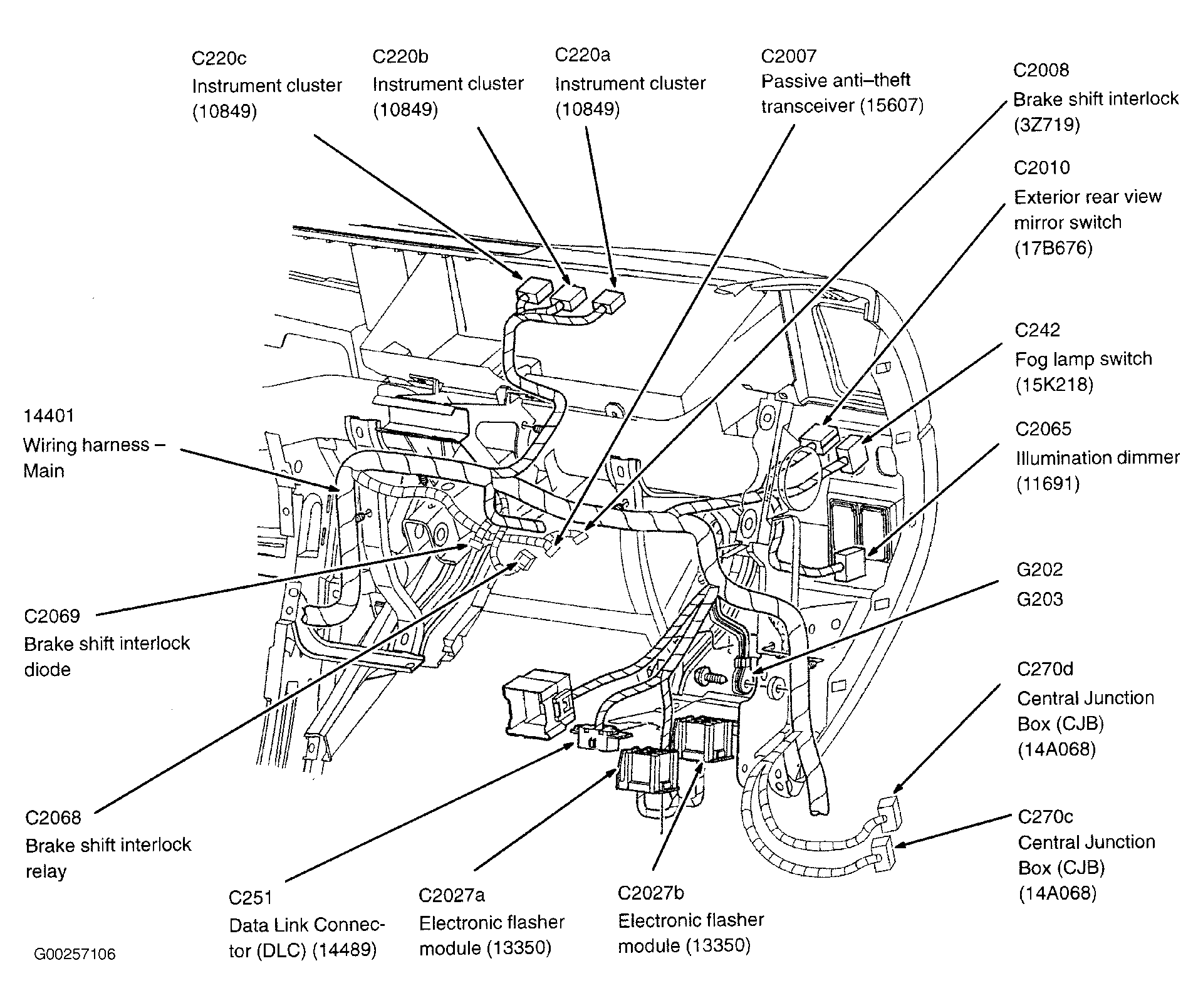 Central Junction Box (CJB) Below left end of dash. See Figure .