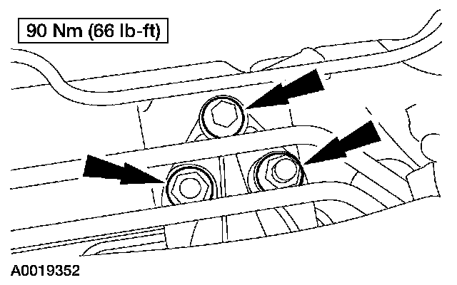14. Remove the dual converter Y-pipe on the 3.0L (4V) engine or the muffler inlet pipe on the 2.0L (Zetec) engine.