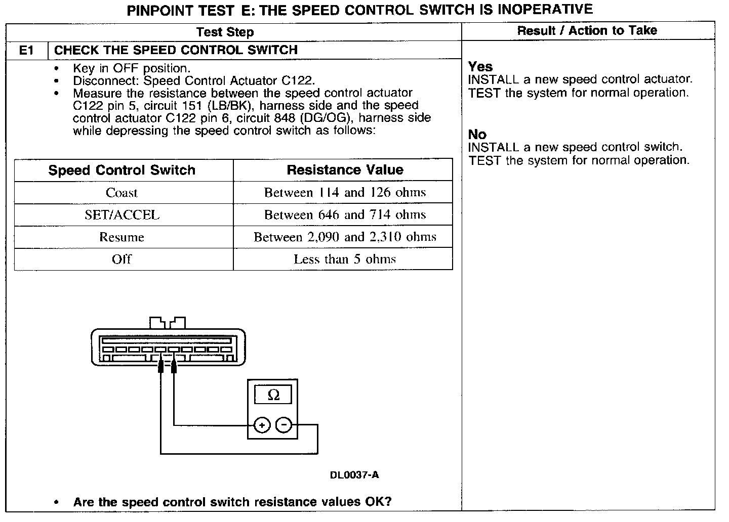 PINPOINT TEST E: THE SPEED CONTROL SWITCH IS INOPERATIVE