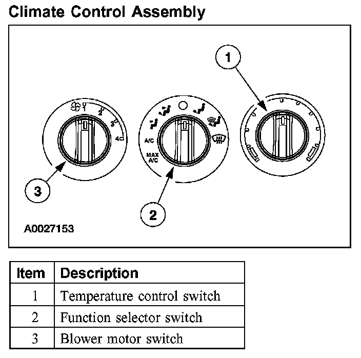 The climate control assembly has three system controls: