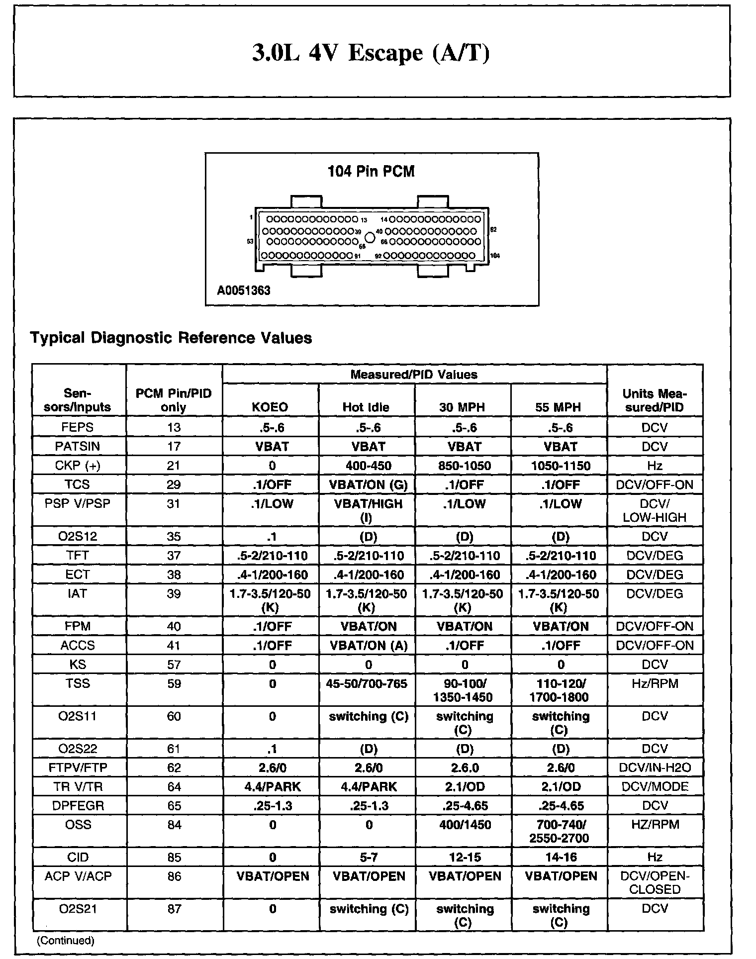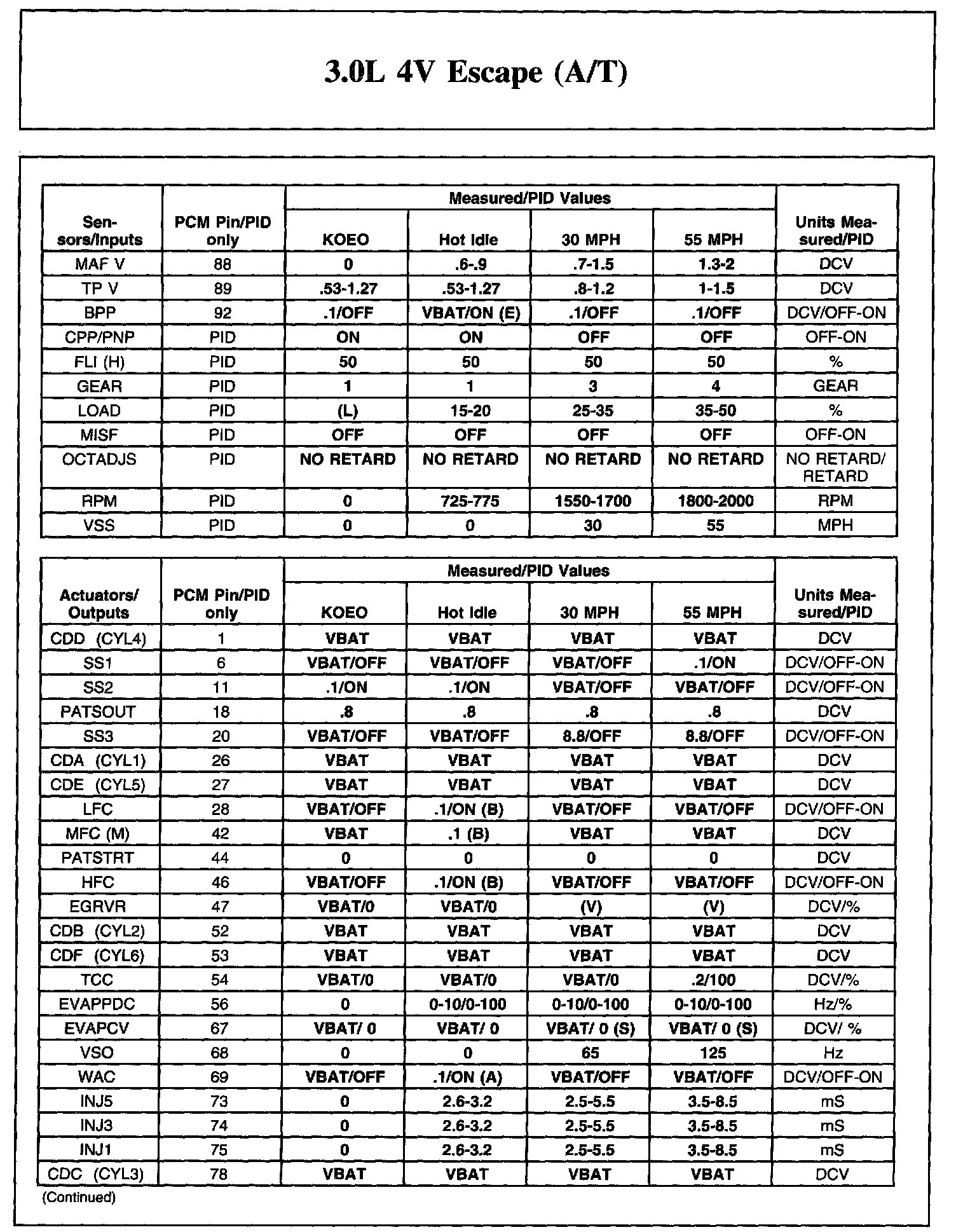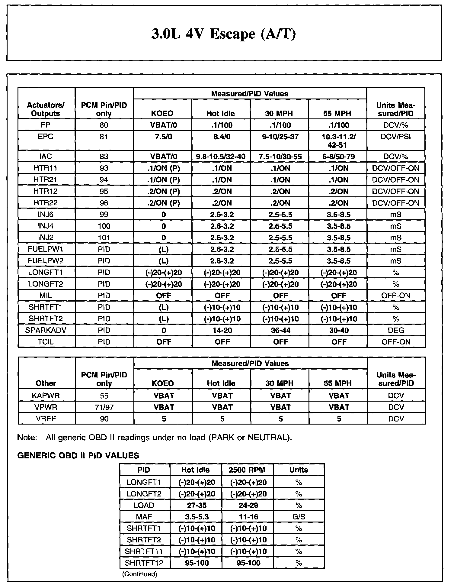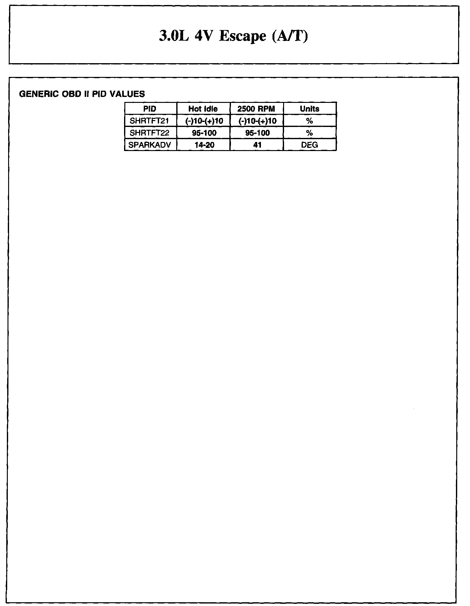 Home >> Ford >> 2004 >> Escape AWD V6-3.0L VIN 1 >> Repair and Diagnosis >> Powertrain Management >> Computers and Control Systems >> Testing and Inspection >> Scan Tool Testing and Procedures >> Reference Values >> Typical Diagnostic Reference Values