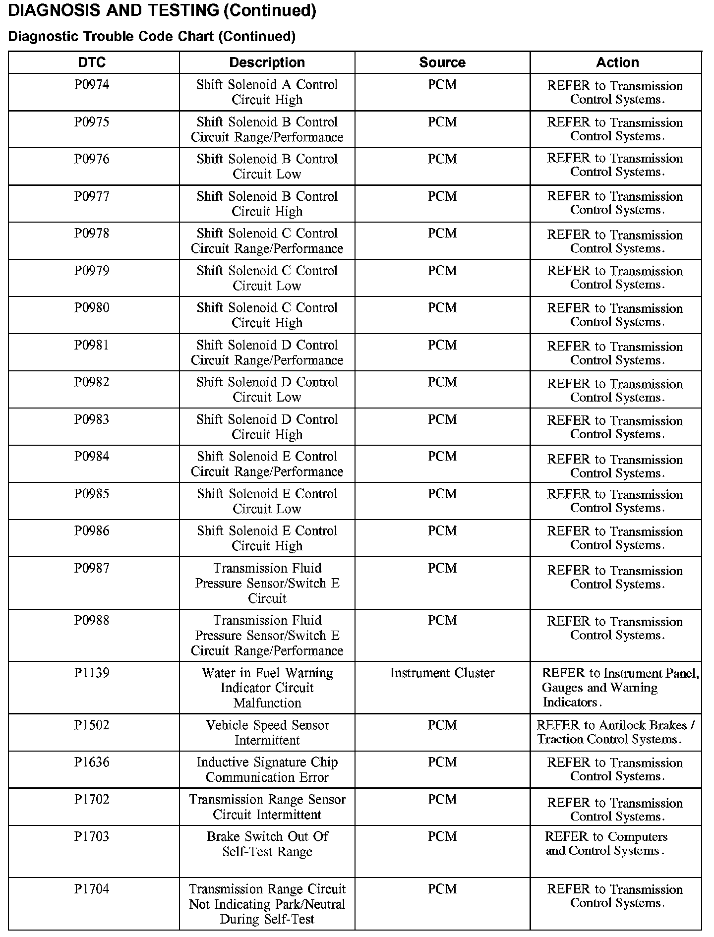 DIAGNOSTIC TROUBLE CODE CHARTDTC Chart B1201 - B1318: