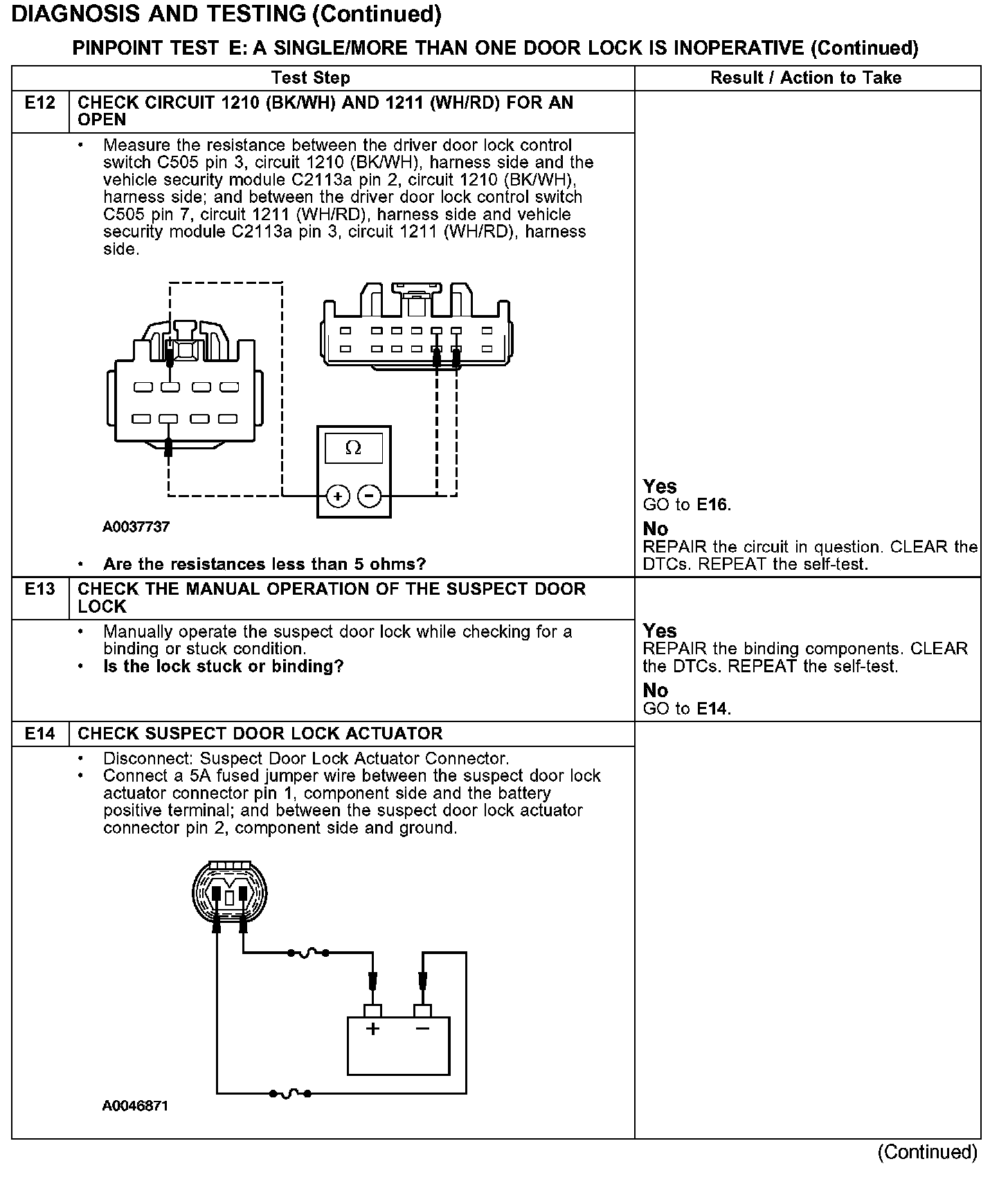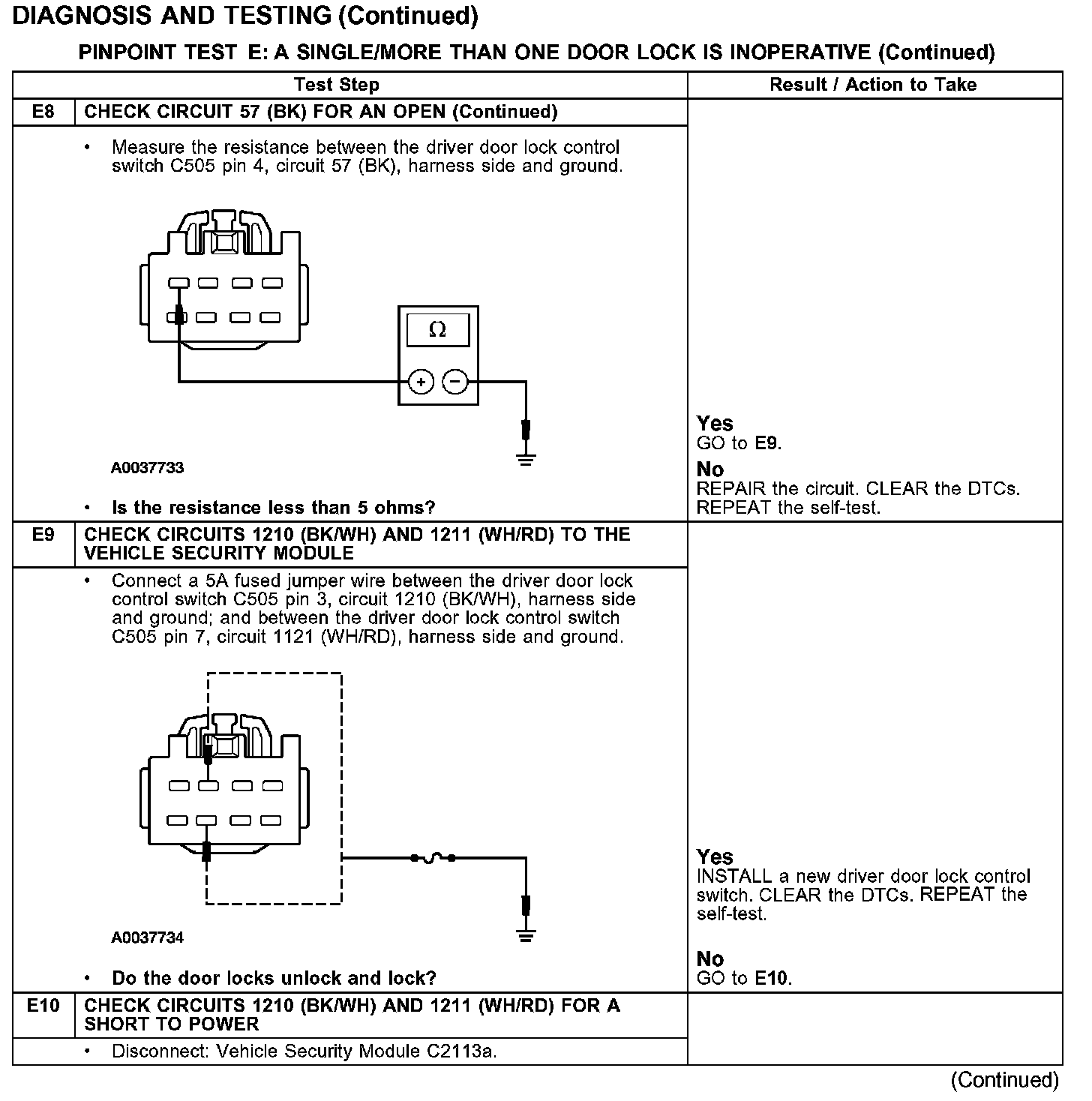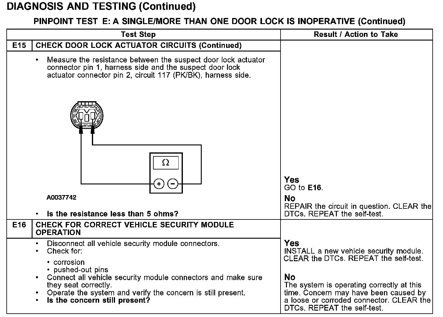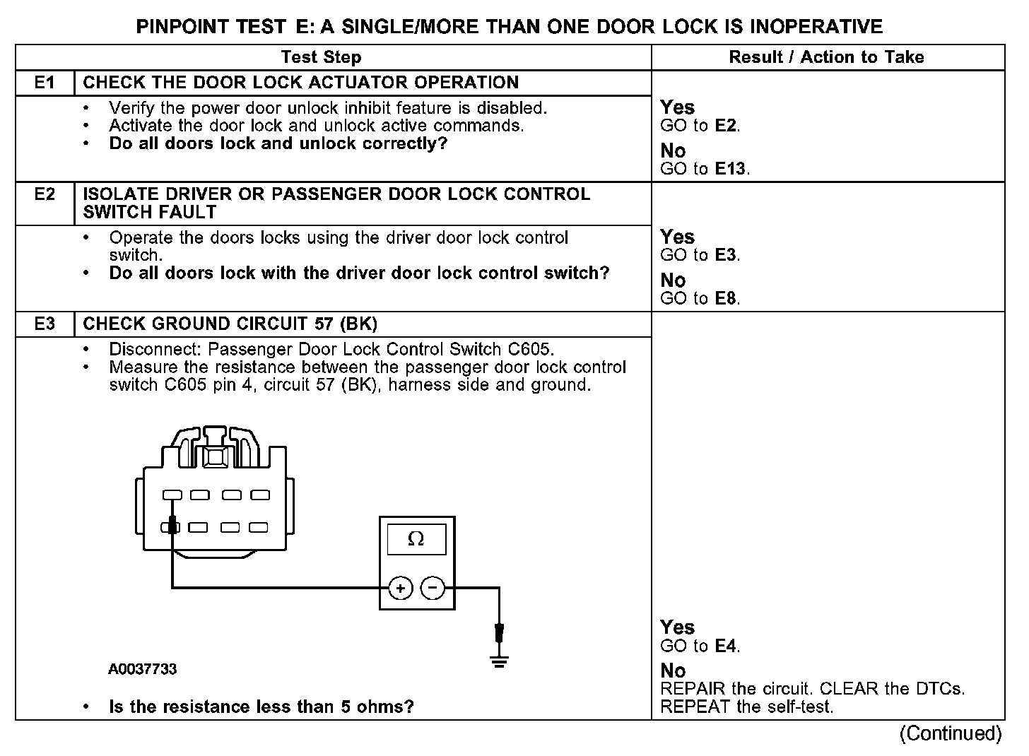 PINPOINT TEST E: A SINGLE/MORE THAN ONE DOOR LOCK IS INOPERATIVE