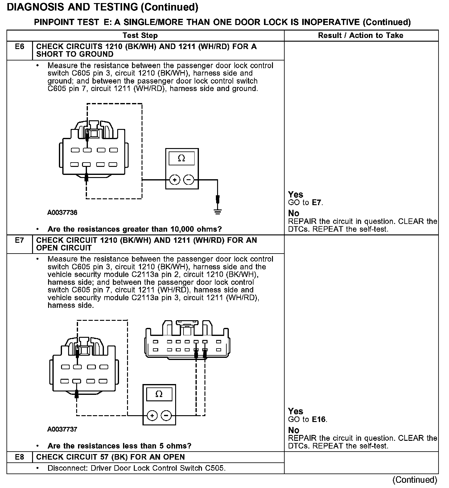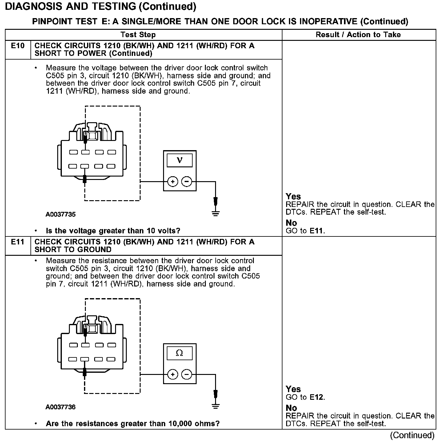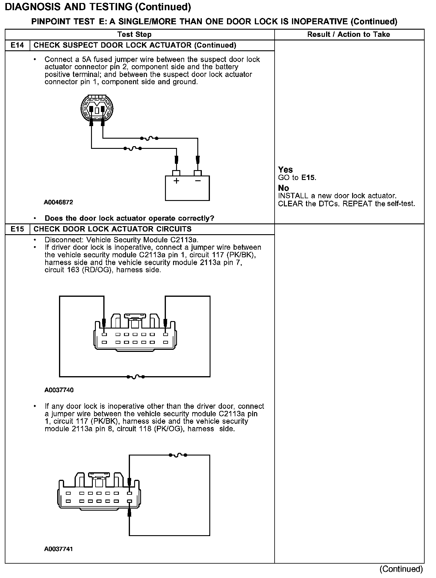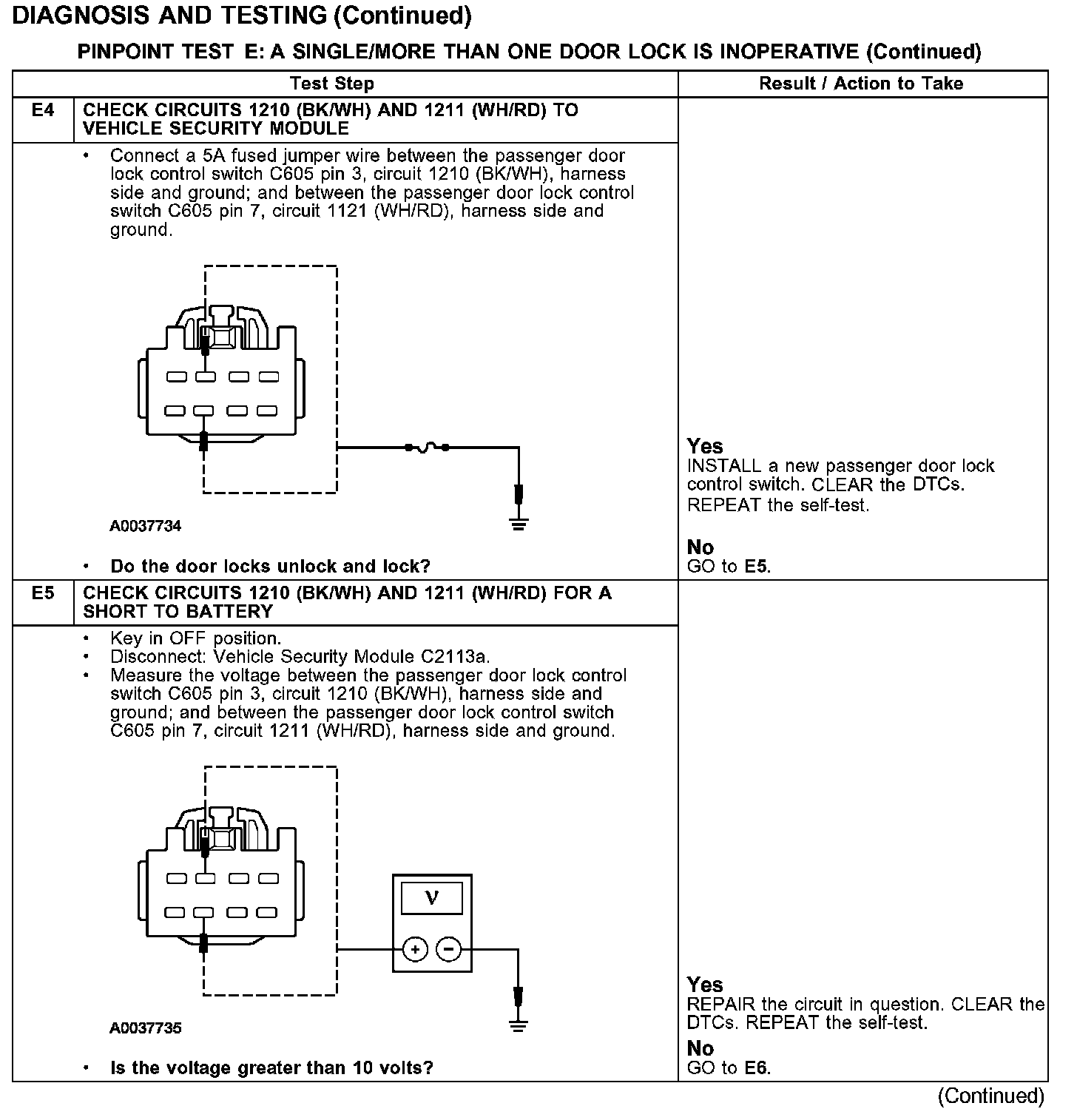 PINPOINT TEST E: A SINGLE/MORE THAN ONE DOOR LOCK IS INOPERATIVE