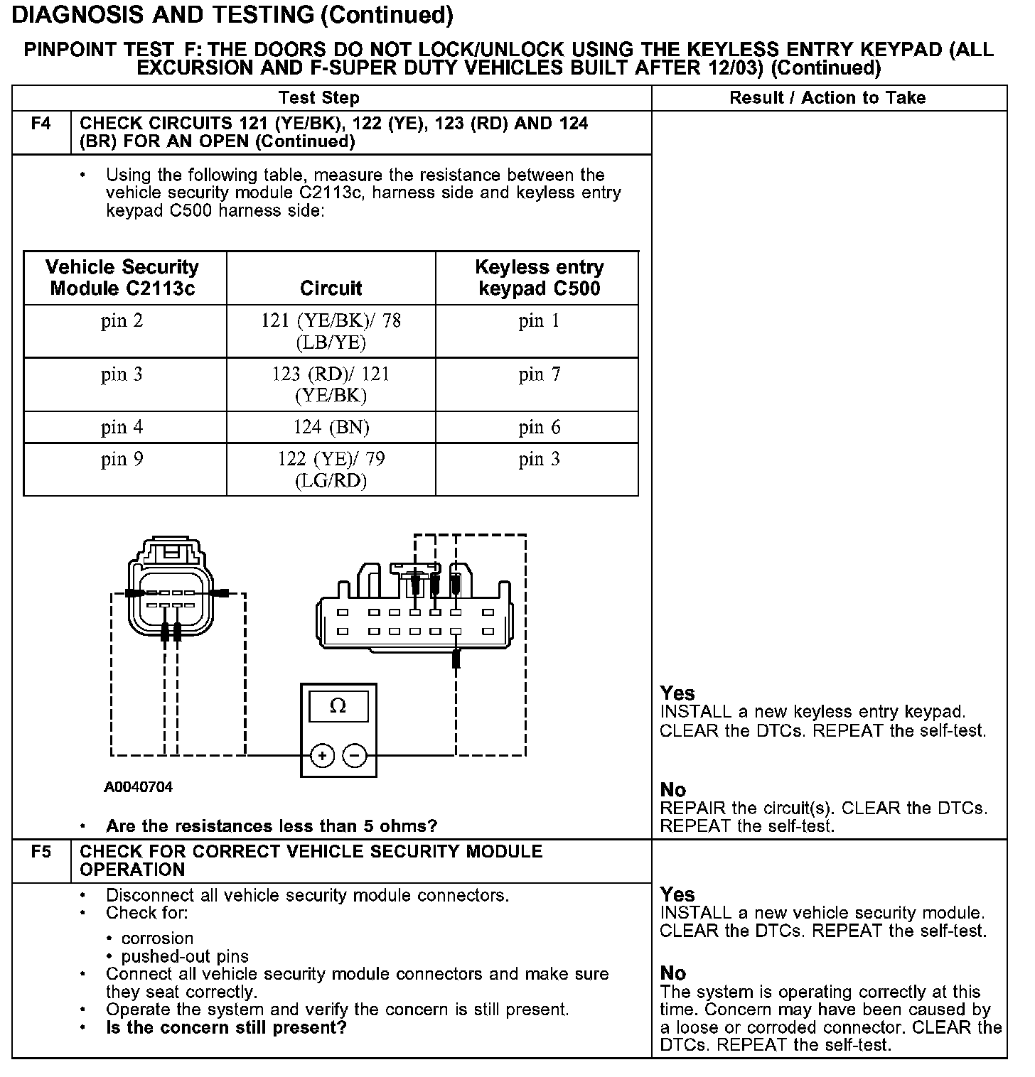 PINPOINT TEST F: THE DOORS DO NOT LOCK/UNLOCK USING THE